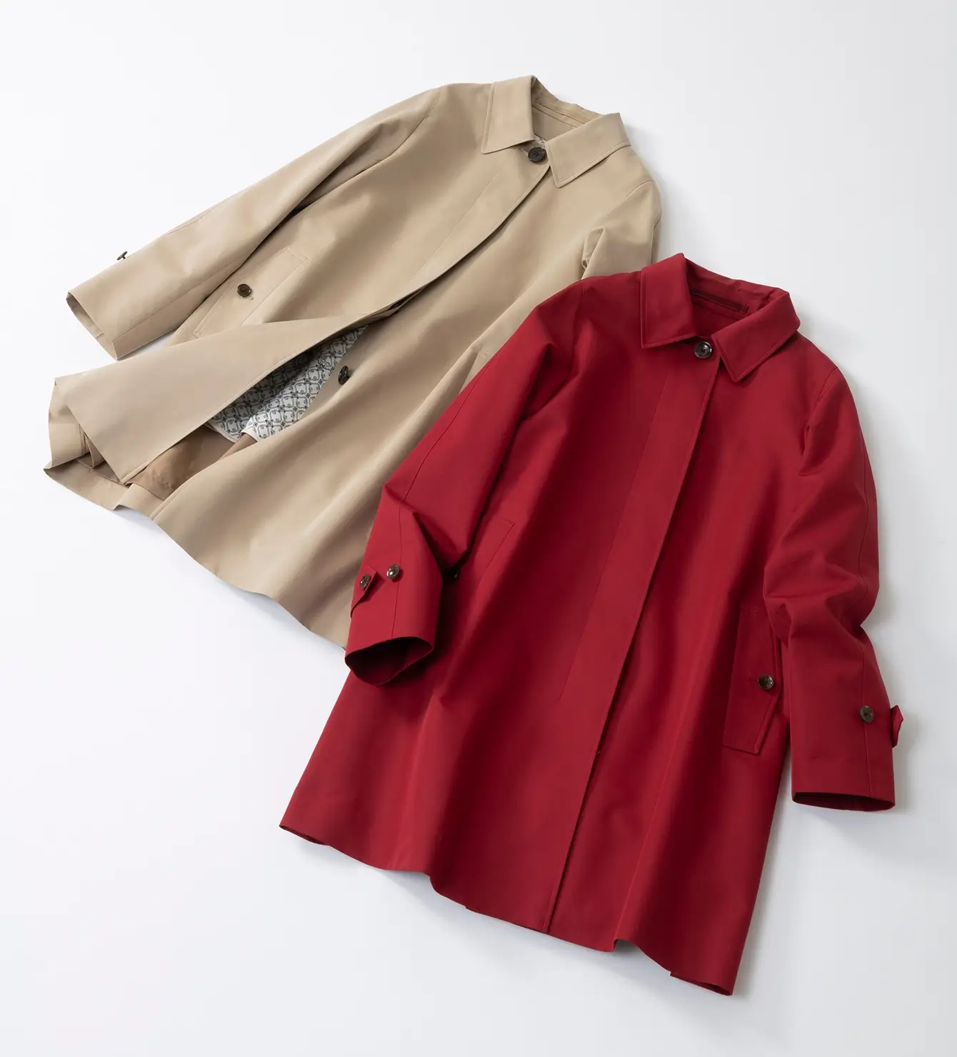 デザイン力と技術力の調和によりつくり上げた、Aラインの軽量ギャバジンコートは、