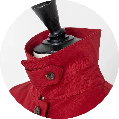 素材はSANYOCOATでも実績のあるギャバジン素材の中から、AMACAに合った軽さとしなやかさを併せ持つものを、ひとつひとつ吟味して選定。選び抜かれた素材は、SANYOCOAT同様表地に耐久はっ水・はつ油、ライナーに吸湿発熱と、機能面も充実しています。 -