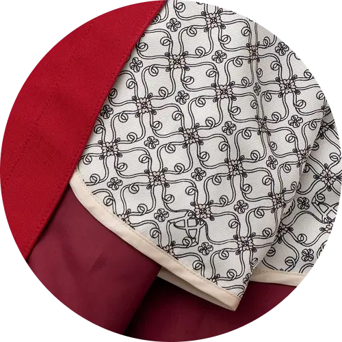 LIBERTYプリント脱着式のライナーに使用したのは、AMACAオリジナルのLIBERTYプリント”リボンメダリオン”。吸湿発熱機能を持つ中わたを使用し、華やかさだけでなく機能も兼ね備えます。