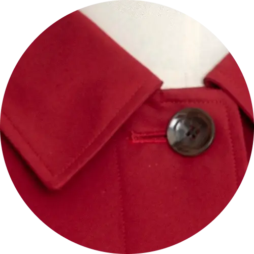 着脱時の実用性と、強度を兼ね備えた立つボタンは、SANYOCOATの代名詞。職人の手によってひとつひとつ手付けされています。 -