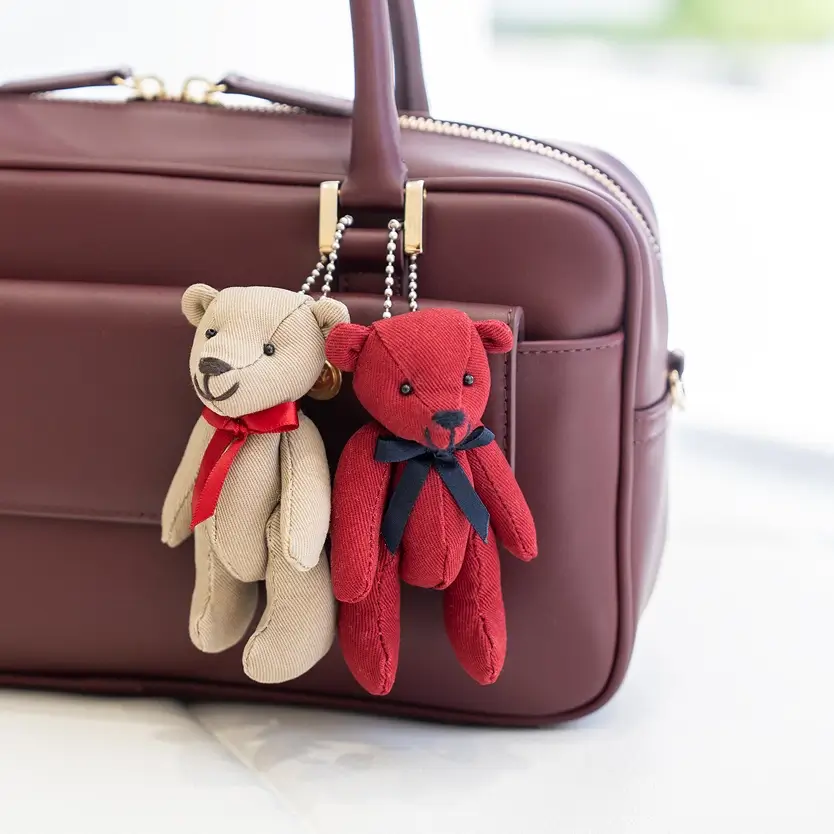 コートの色とリンクしているツイル素材でお作りしたオリジナルベアをプレゼント。
