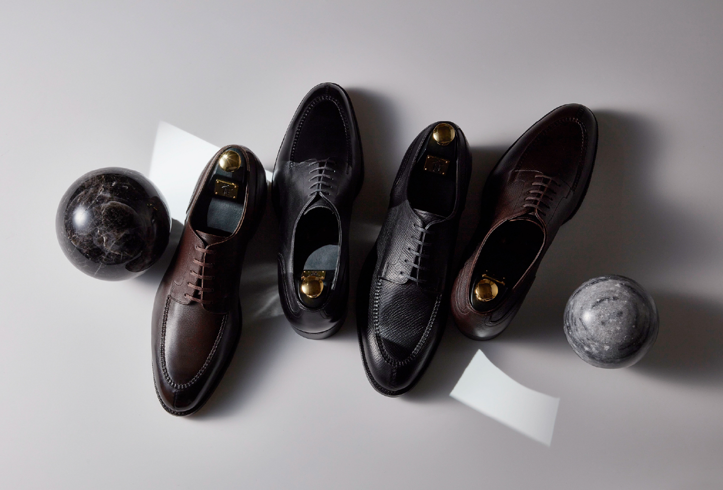 紳士靴の優美さは、曲線と曲線の乱れなき連なりによって醸し出されます。「匠」シリーズではその曲線美をさらに追求。象徴的なのは、土踏まず周りに採用された「セミべヴェルドウエスト」仕立てです。一般的な靴よりもシェイプを絞り込み、抑揚をつけて仕上げられているのがわかるはず。これによって、靴全体にグラマラスな曲線美が強調され、いっそう流麗な佇まいになるのです。もちろんこれも、職人の手仕事がなせる技。世界の高級靴にも採用される意匠です。