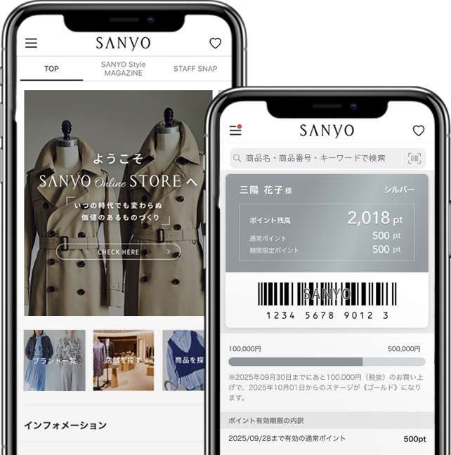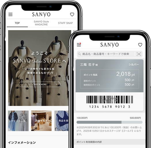 SANYO MEMBERSHIPに登録していただくと、店舗でのお買い物の際に会員証として利用でき、簡単にポイントが貯められます。