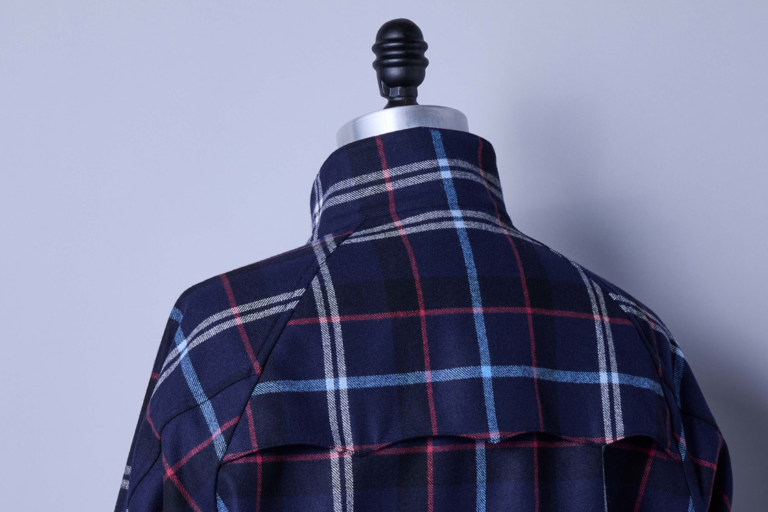 アンブレラヨークなど1930年代にゴルフウェアとして開発された際のディテールを再現。コットンベースの素材感と一線を画す上質なウール素材で織り上げたハウスタータンを表地に、英国らしい遊び心を表現しました。細部までこだわり抜いた本格的な一着。