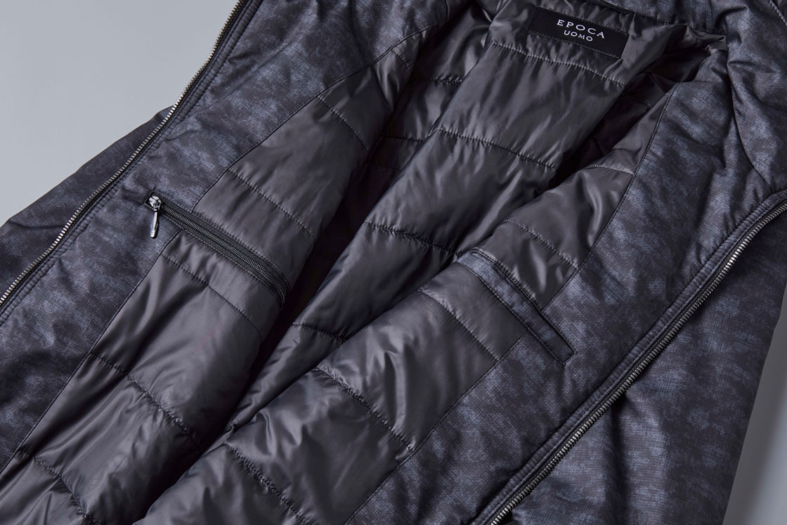 EPOCA UOMOのアイコンでもあるカモフラ柄をアウターに使用した機能性ブルゾンが登場。ポリエステルリップストップタフタ生地に、洗練されたラインカモフラ柄をプリントした生地を使用し、中わたには、体温を遠赤外線として輻射し身体を内側から温める「光電子わた」を採用。ファッション性と軽さ、暖かさといった機能性を両立しました。さらに手洗い可能なイージーケア仕様で、日常使いにも最適。カモフラ柄にインパクトがあるので、このアウターを羽織るだけで洒落感が加わり、インナーにロングスリーブニットやカットソーと合わせれば、都会的なカジュアルスタイルが完成。冬のおでかけの相棒にぜひ手に入れたい。