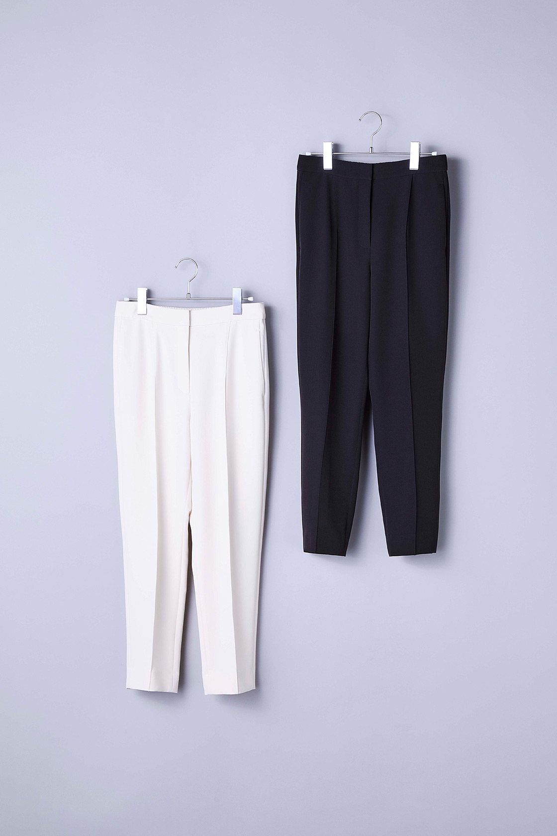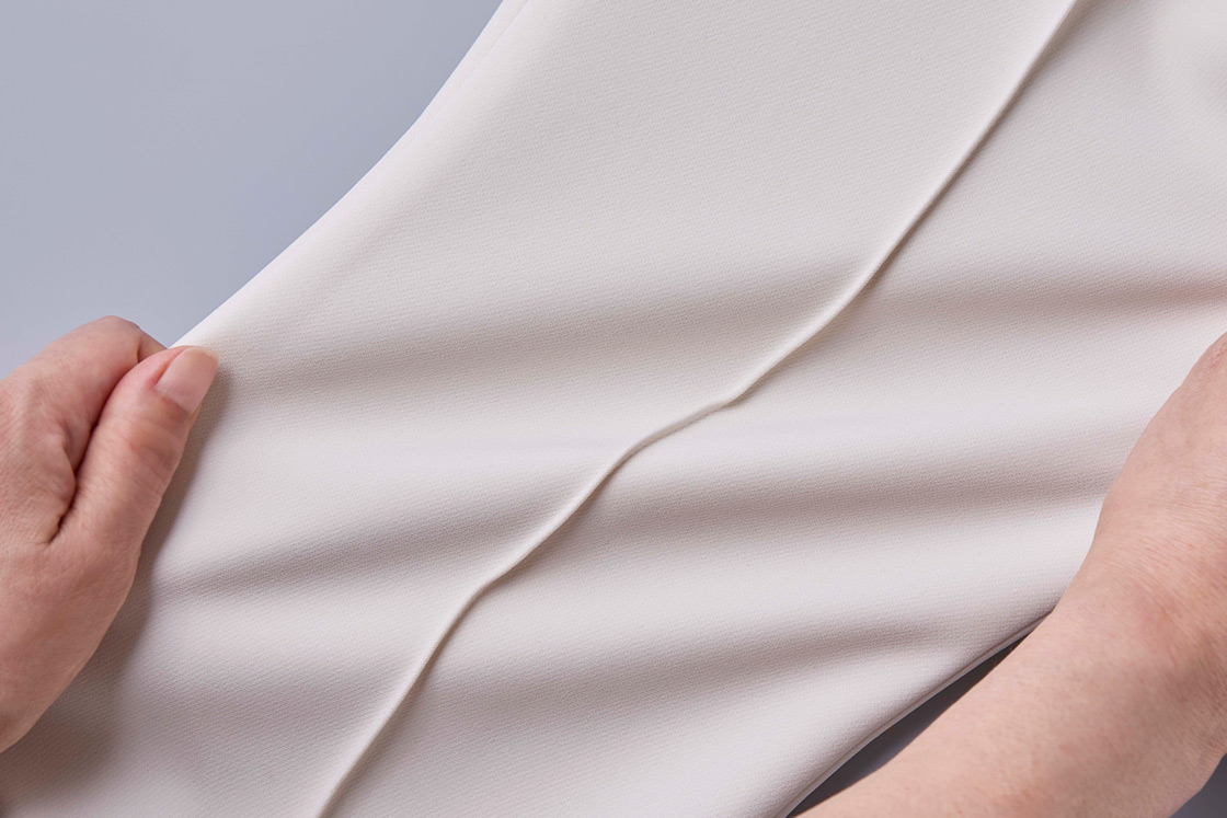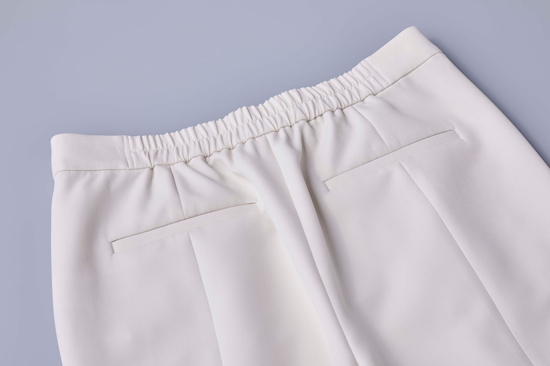 秋らしいダブルクロス素材を使い、センターラインにステッチを施すことで、美脚見えをしっかりキープ。ストレッチ性も抜群で、さらにシワになりにくいから、長時間座りっぱなしの日もストレスフリー。自宅で洗えるため、白パンツでも気兼ねなく着回せるのも人気の理由です。