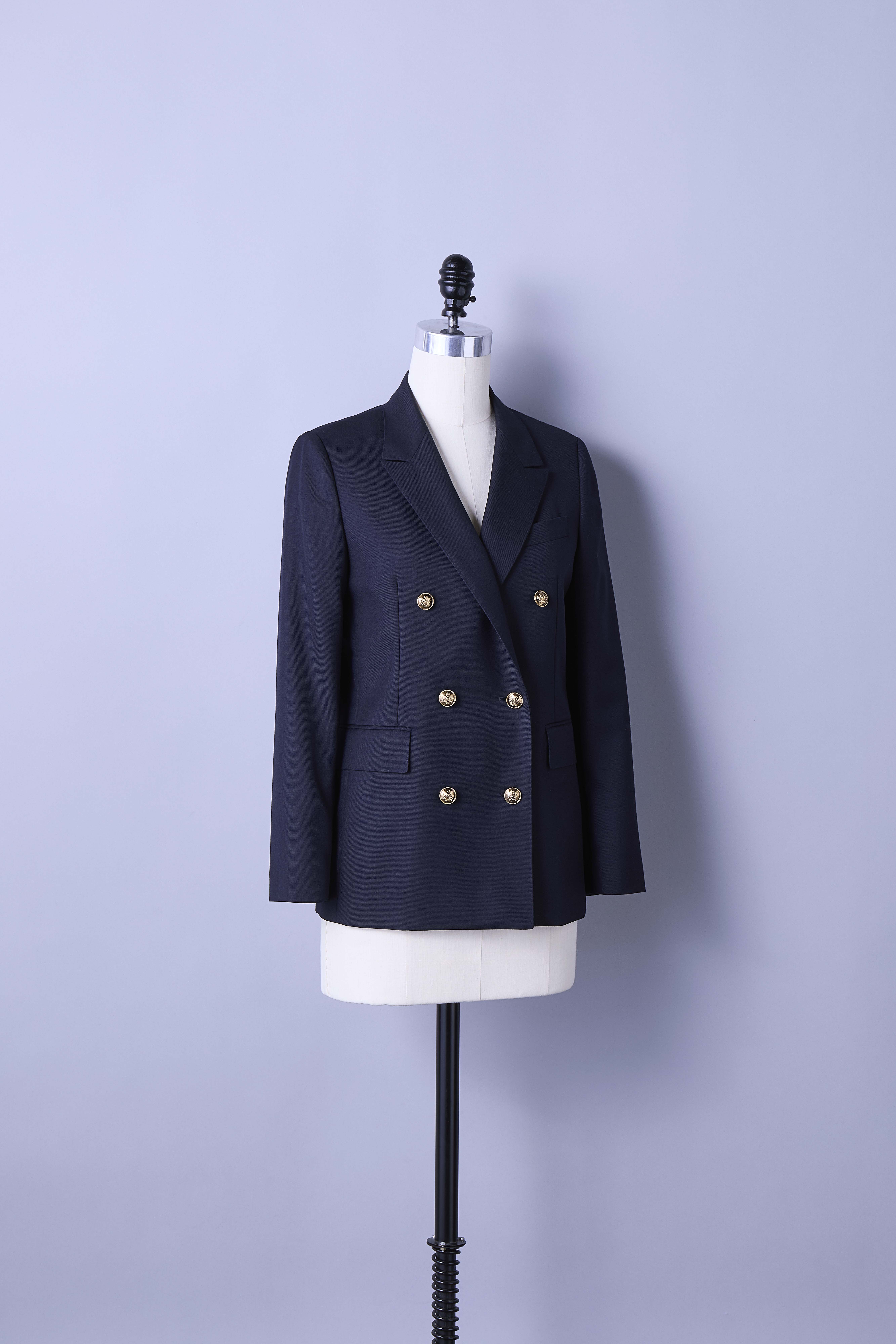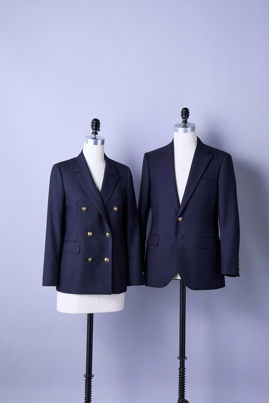 素材は、6色の紺をブレンドしたTOP糸の経糸と、モヘヤ混の緯糸で織り上げたツイル。奥行きある深いネイビーは知性と品格を映し出し、軽やかさとしなやかさを兼ね備えます。纏った瞬間に「正しい一着」であることを実感できる、揺るぎない上質さを宿しています。