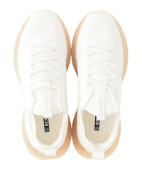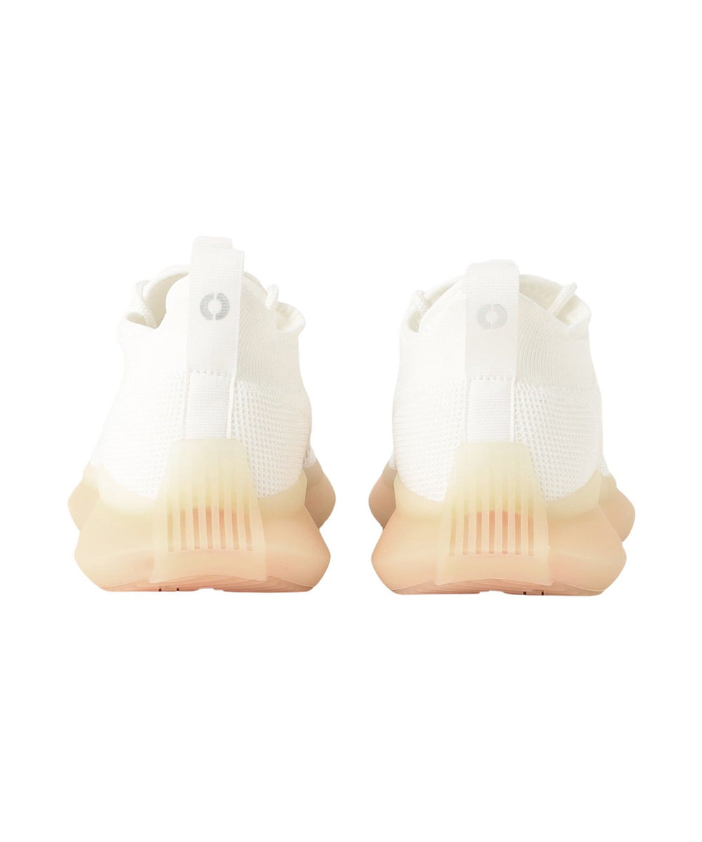 高さ&ボリュームのあるクリアラバーソールと、アッパーのニット素材による、クリーンにまとめた異素材ミックス感がトレンドを感じさせるNEWモデル。