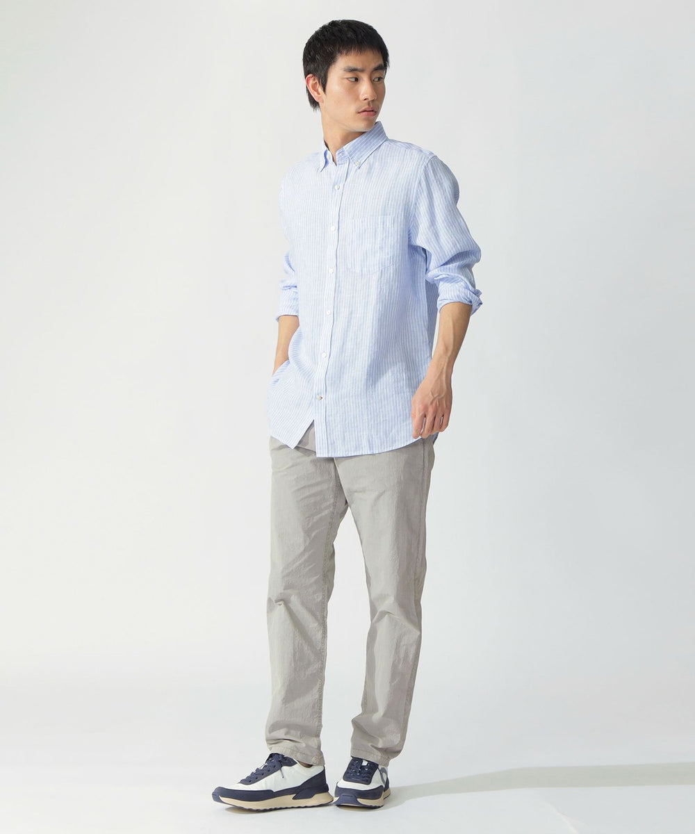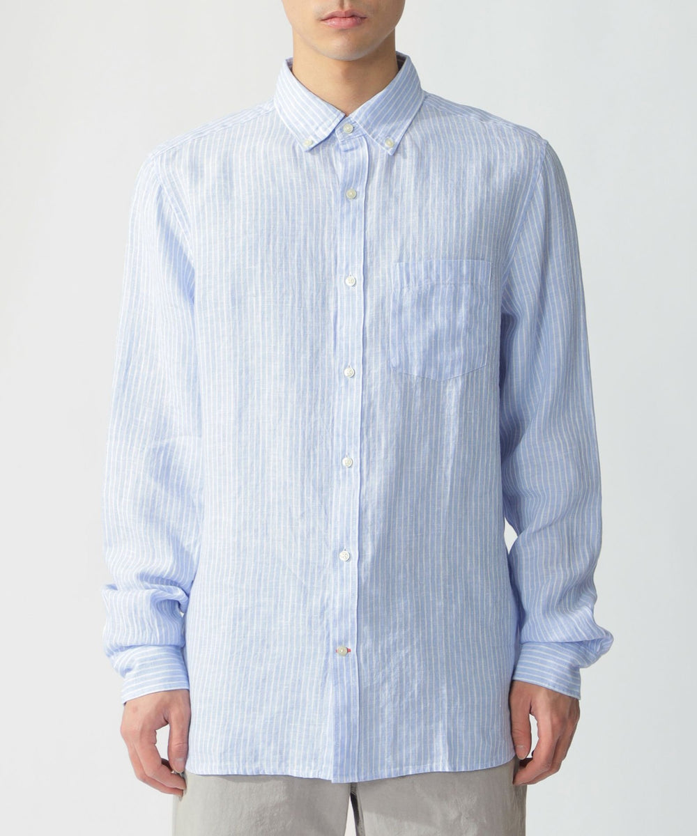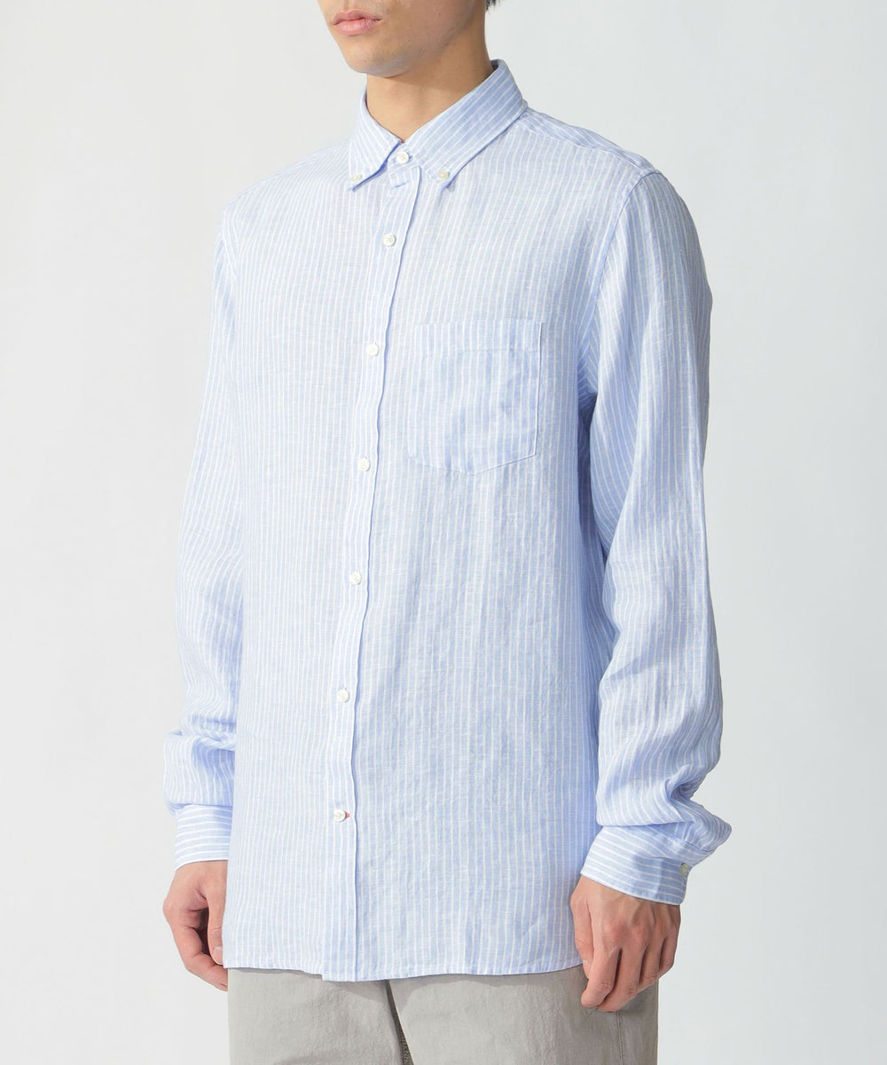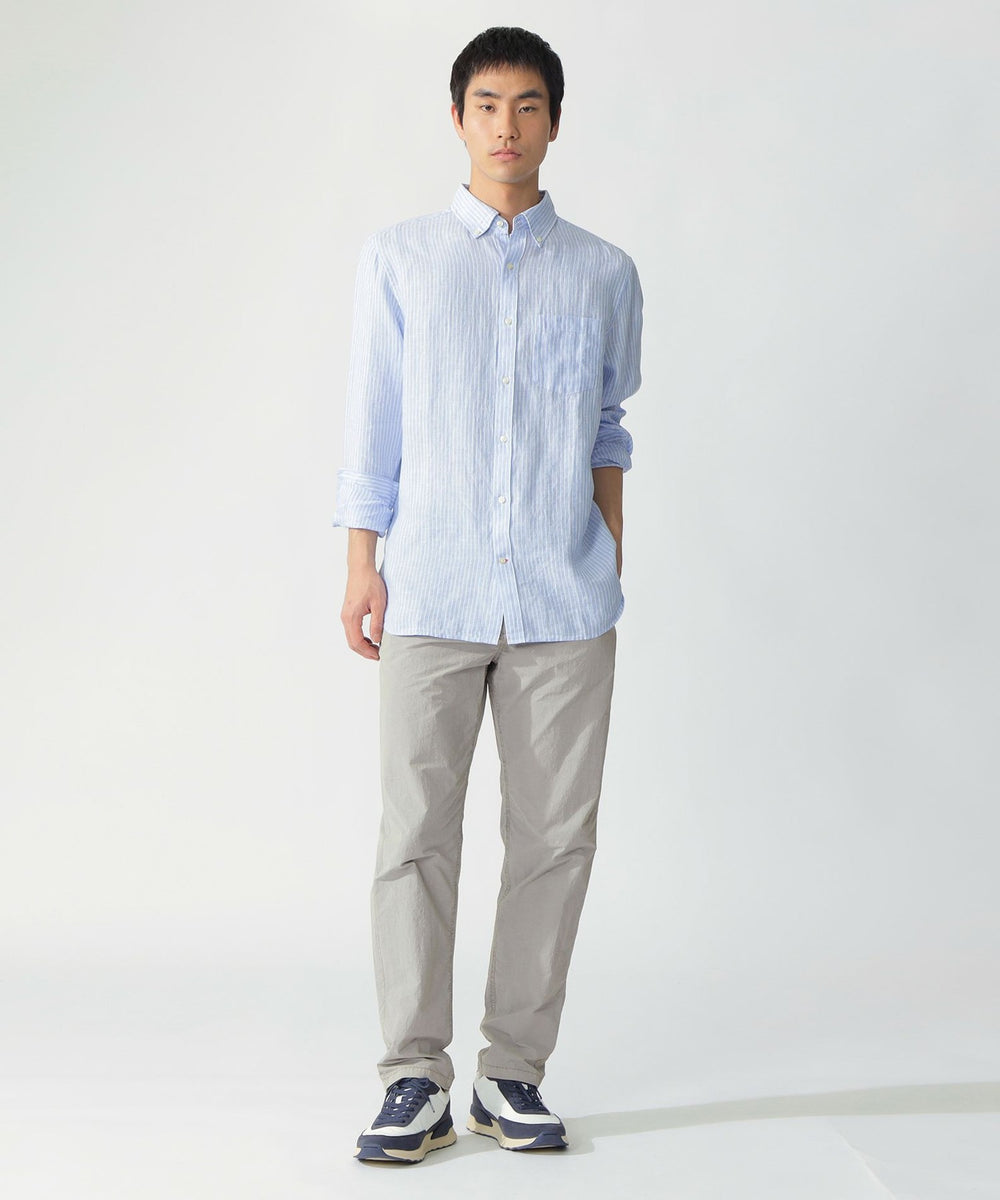 軽やかで滑らかなタッチにこだわった麻素材のストライプシャツ。