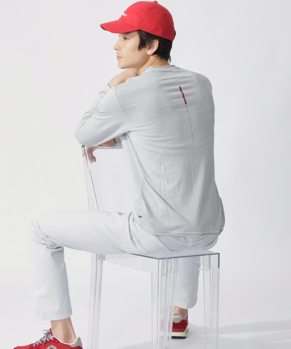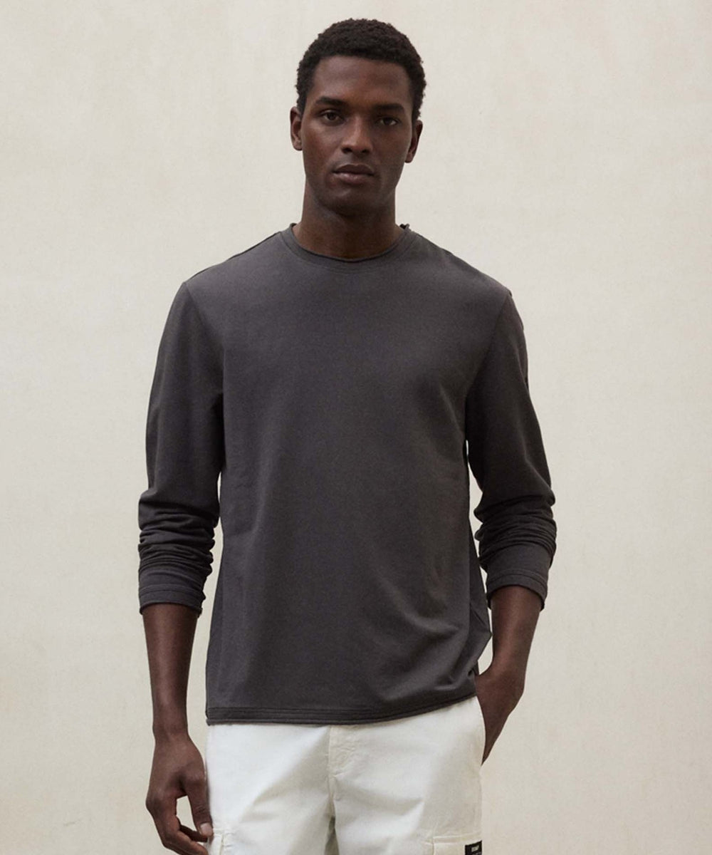 レギュラーフィットで、首や裾周りのロールエッジがカジュアルでスタイリッシュな印象を与えます。