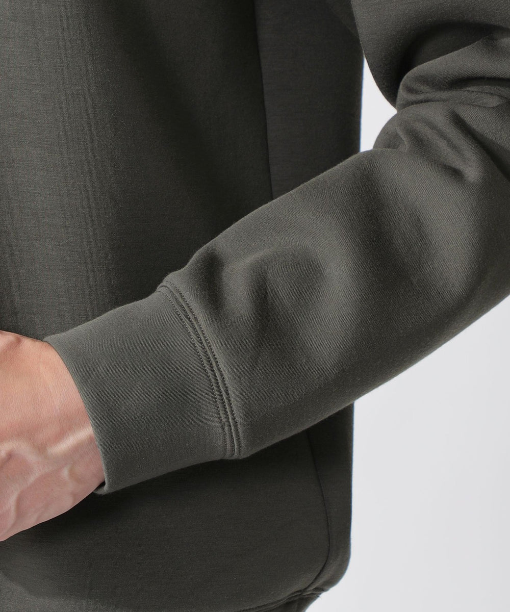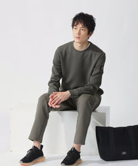 クリーンな表情のダブルニット(ダンボール)素材は、滑らかな膨らみと程よいハリ感を兼備する快適マテリアルです。