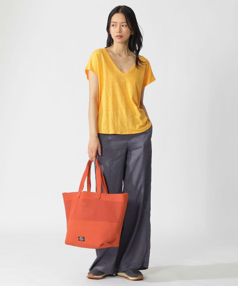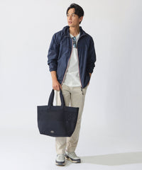 ビーチバッグデザインの大容量ながらも、両側に施したスナップでコンパクトなデイバッグに様変わりします。