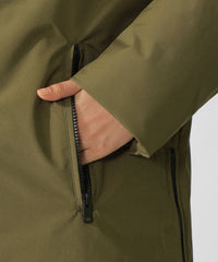 ステッチレスのクリーンな印象に、ボリュームのあるフードが洗練されたカジュアル感を演出。