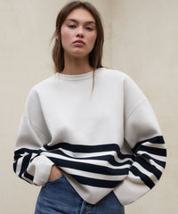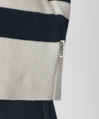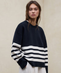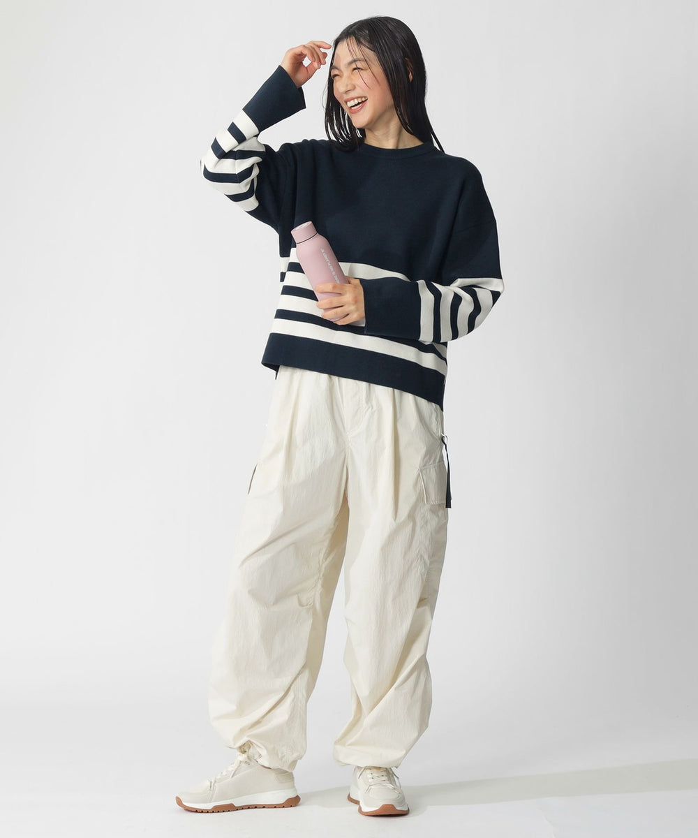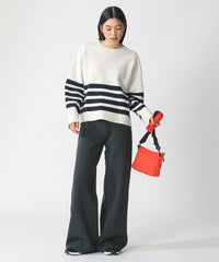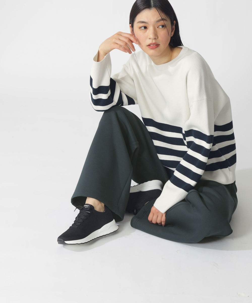パネルボーダーとカラーリングがマリンテイストなプルオーバーニット。