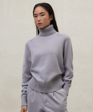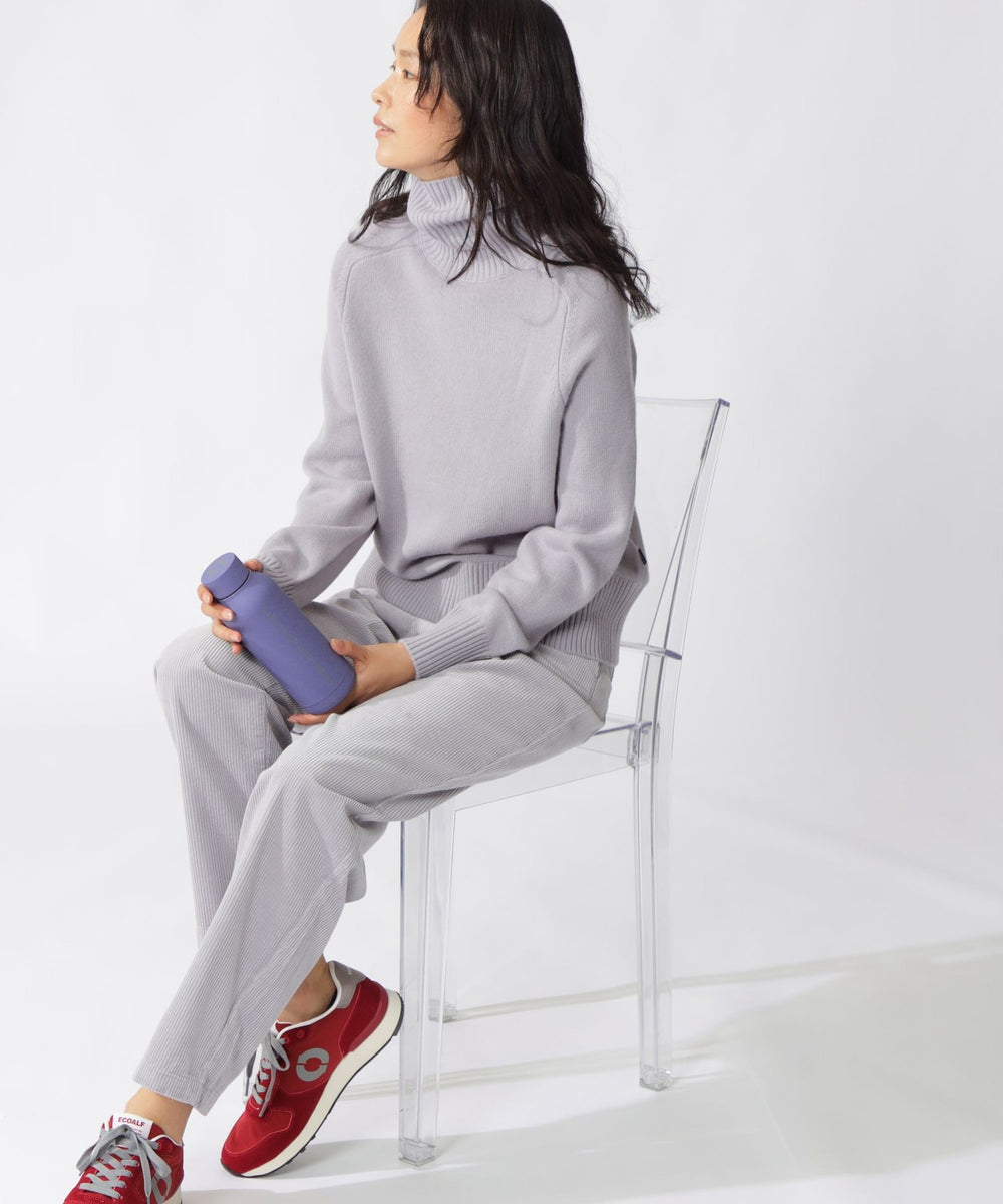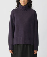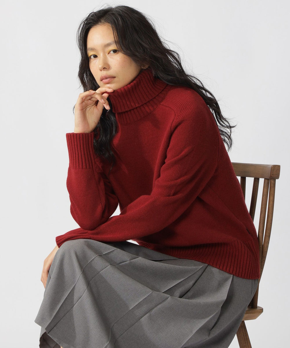 リサイクルウール素材を使用したタートルネックニット。