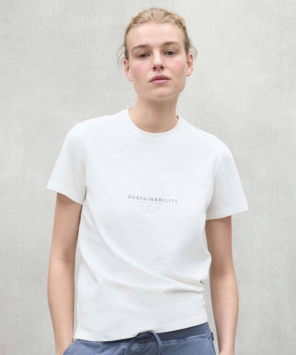 The Salce T-shirt, made of 50% recycled cotton, has a subtle print on the front. It is a comfortable and versatile T-shirt that adds a modern touch to your outfit.
