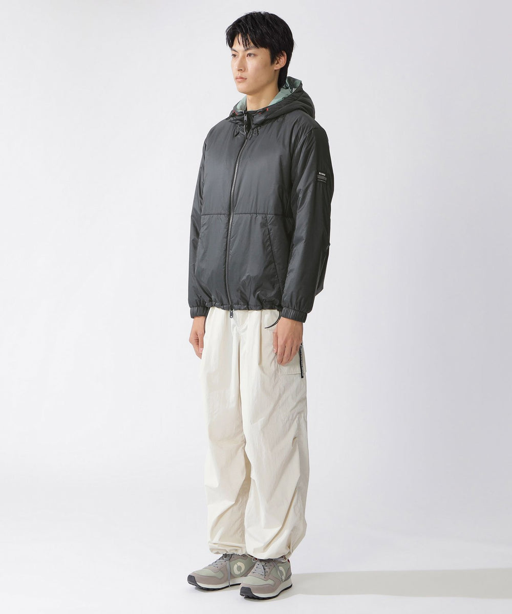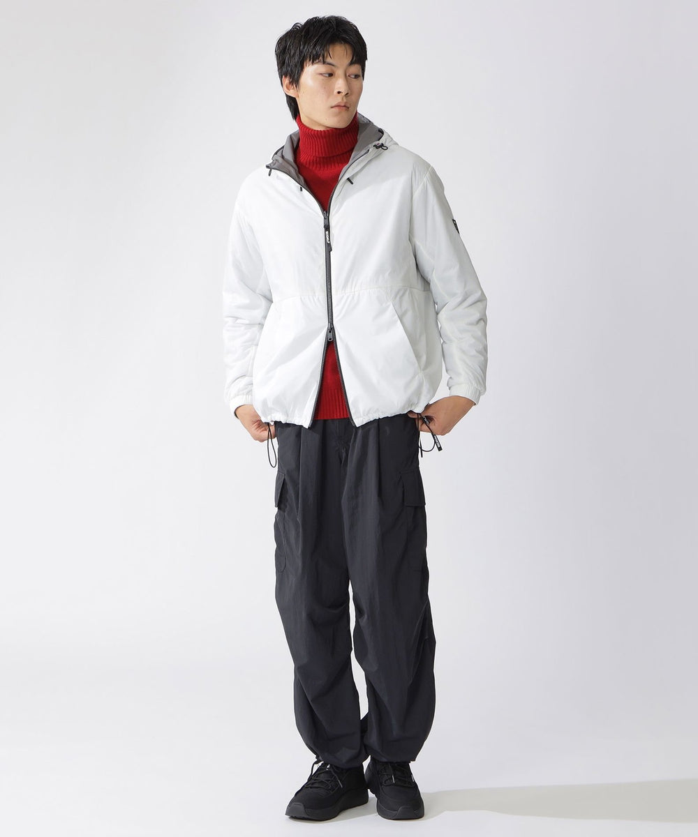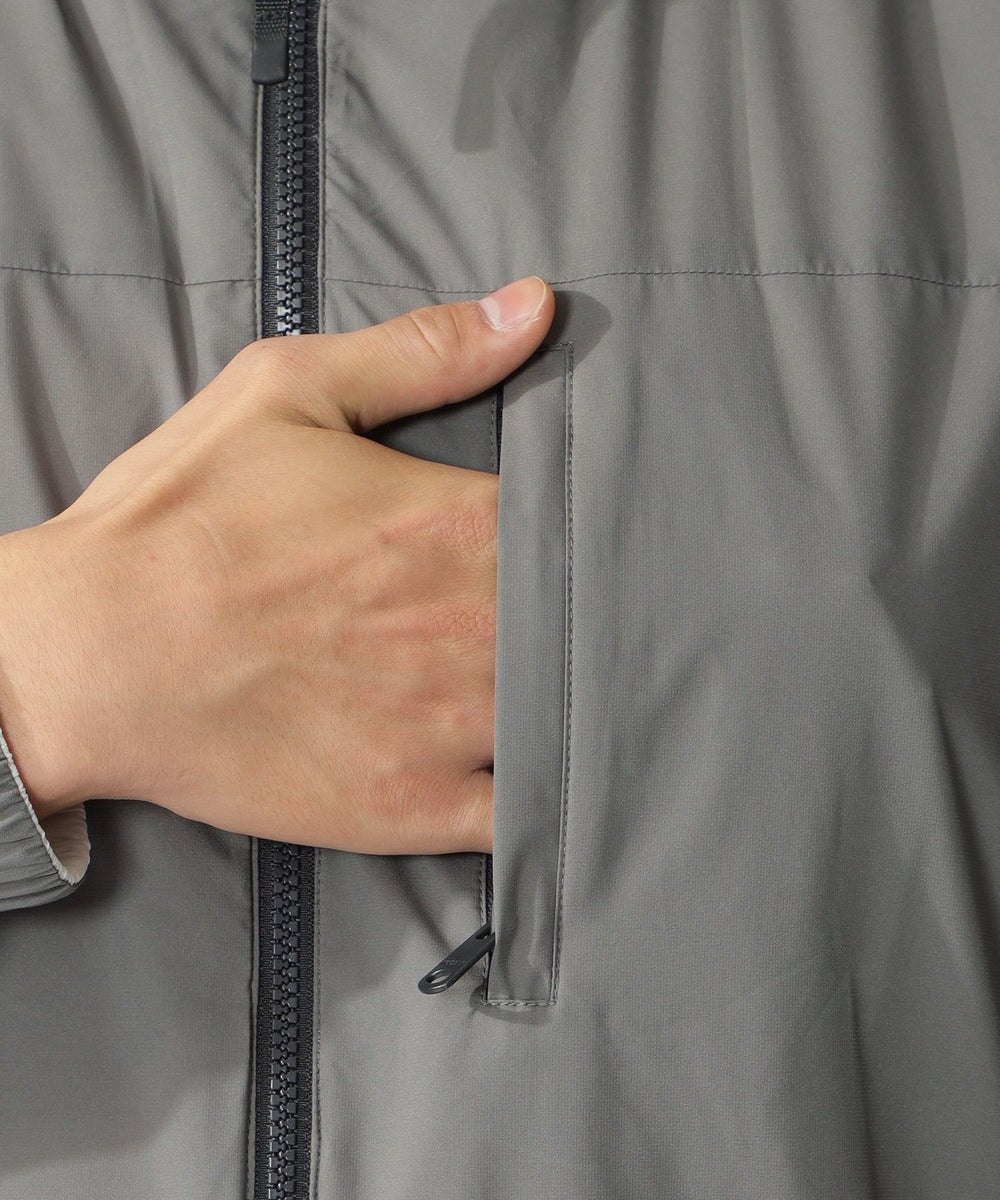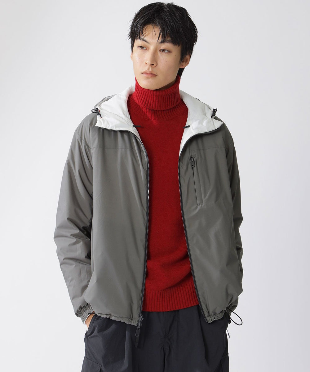 微光沢のある表面と、マットな表情の裏面をバイカラーで切り替えたリバーシブルの2WAYジャケット。