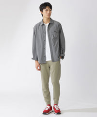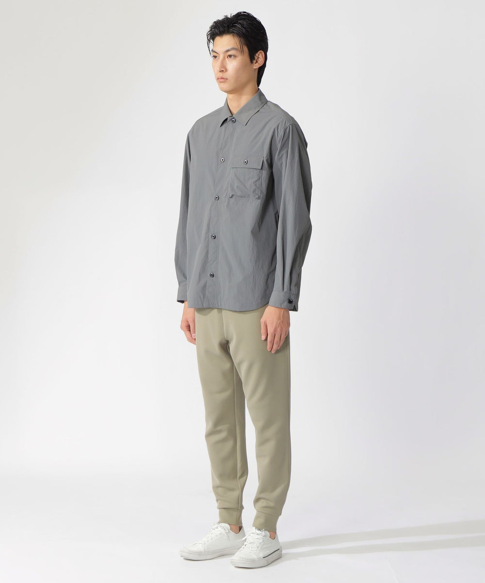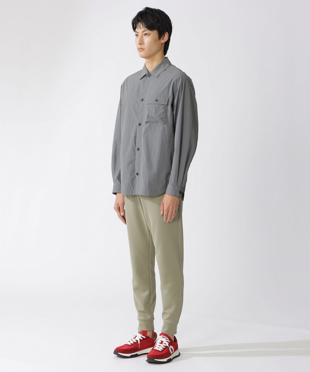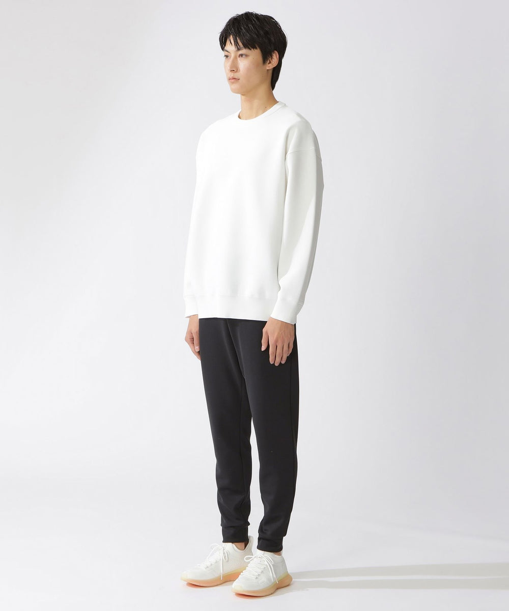 クリーンな表情のダブルニット(ダンボール)素材は、滑らかな膨らみとハリ感を兼備する快適マテリアルです。