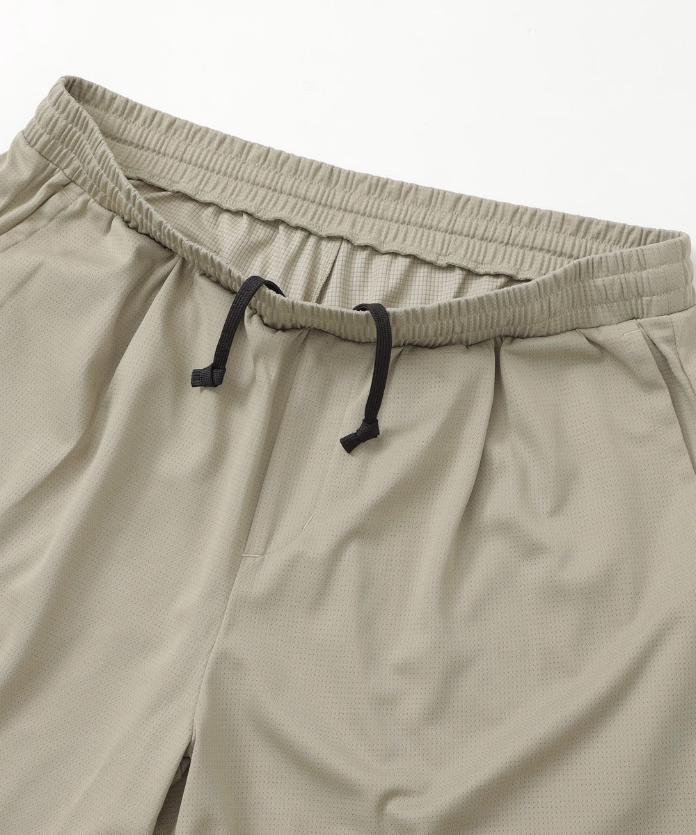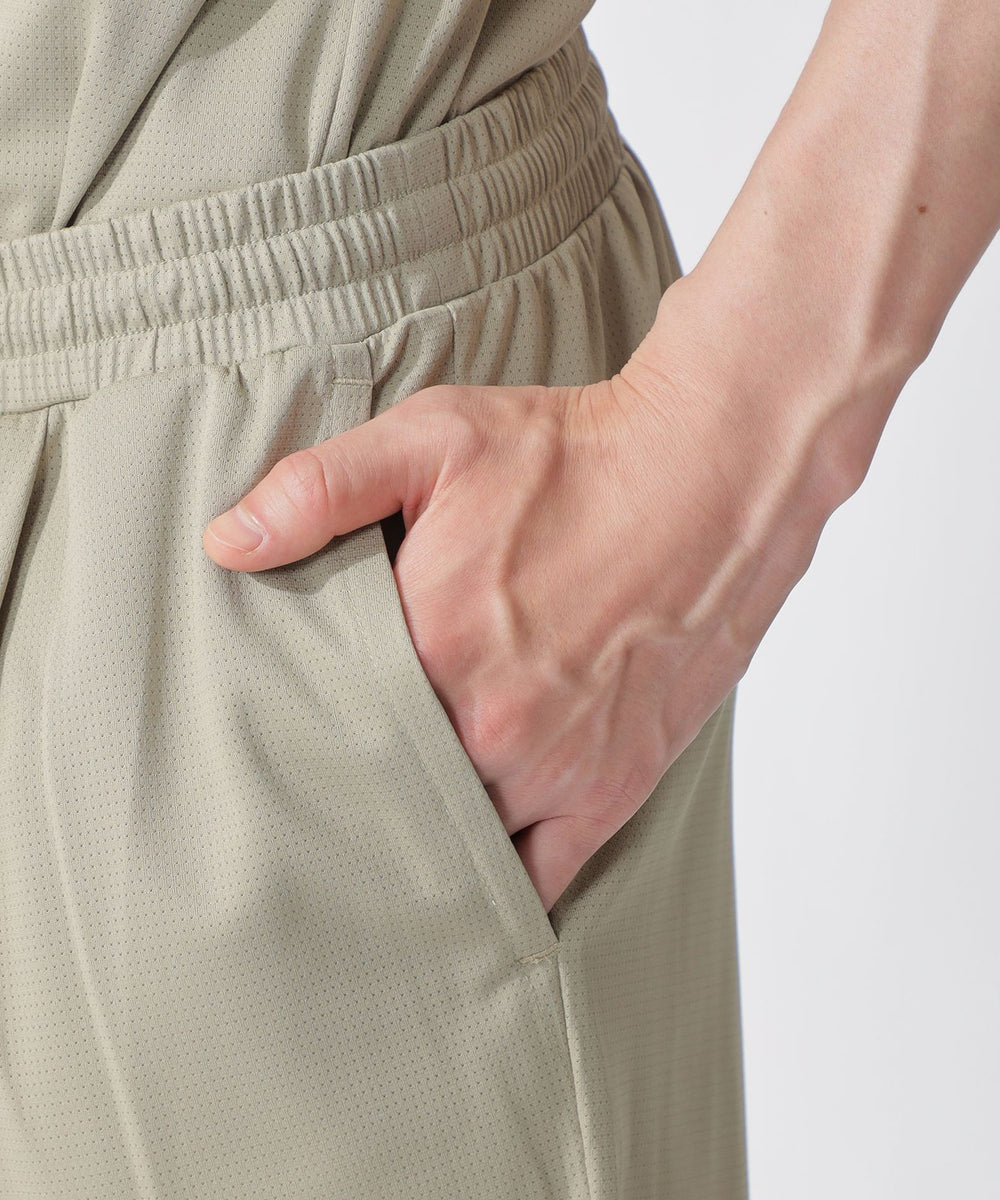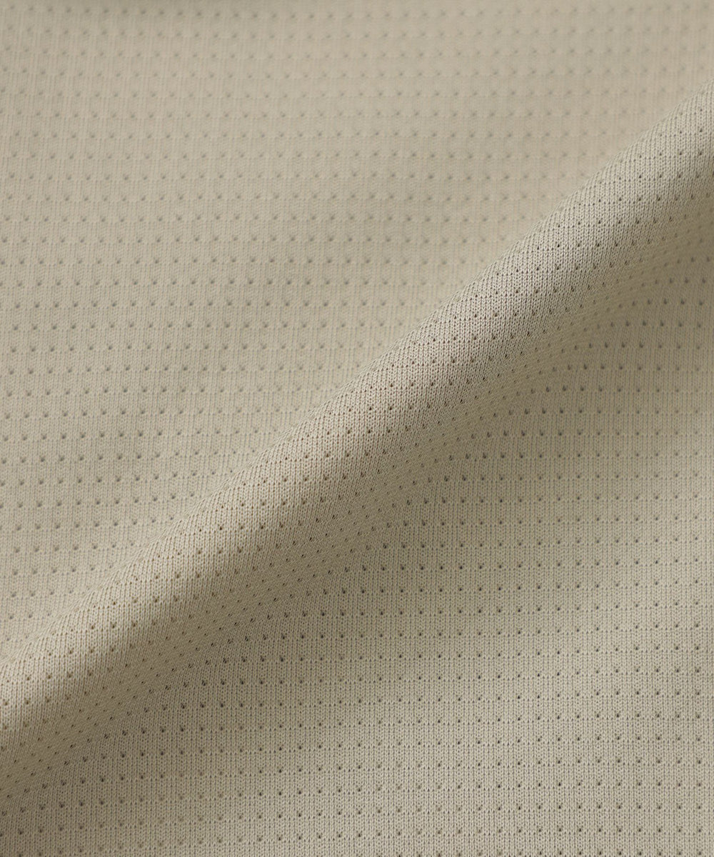素材全面のさりげなく細かい空気孔により、通気性と肌離れに優れたファンクションマテリアル。