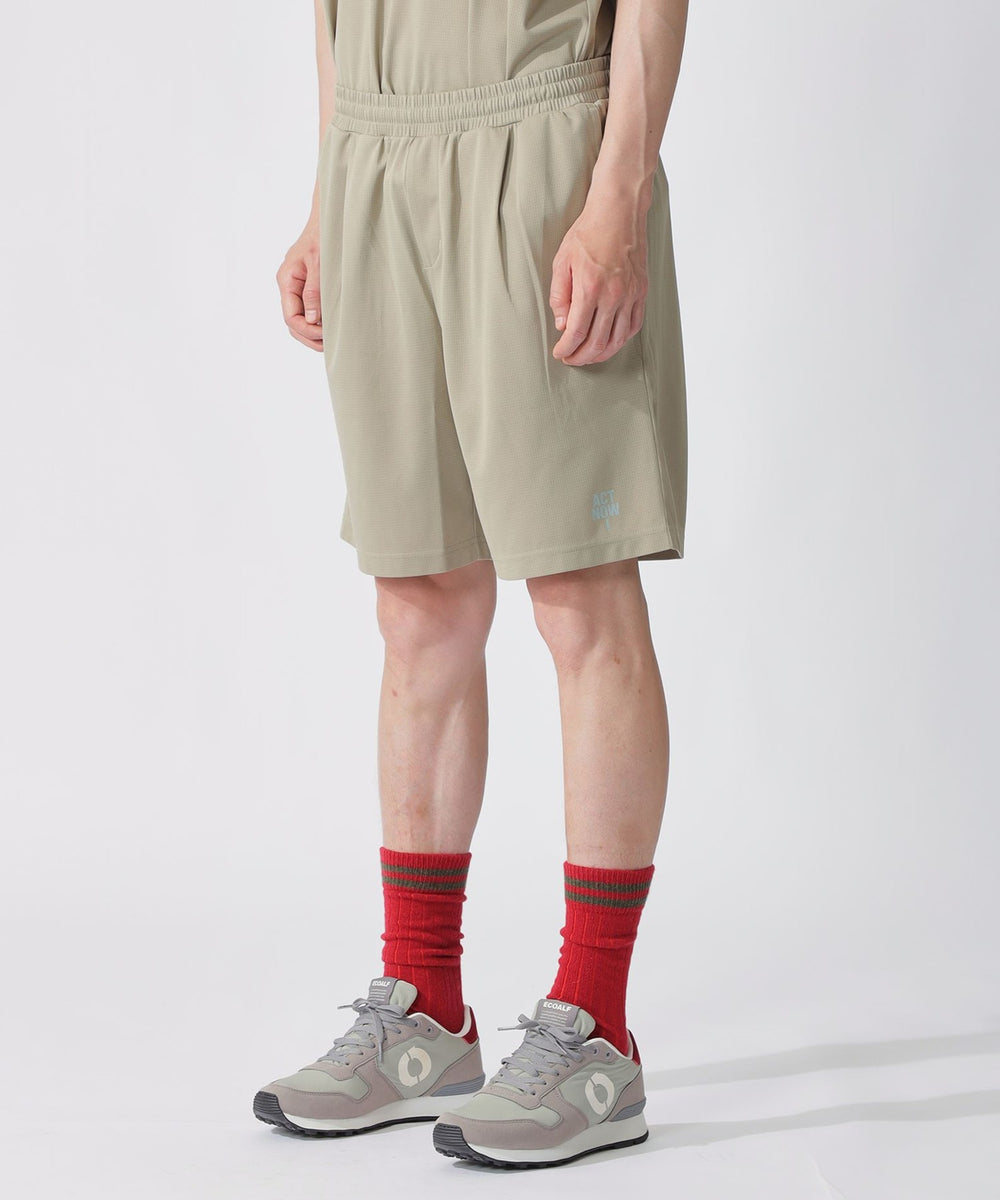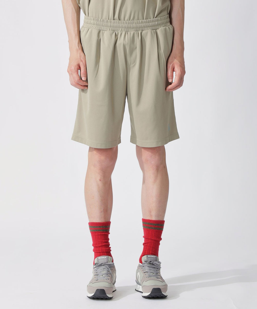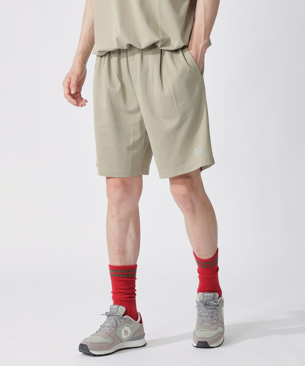 素材全面のさりげなく細かい空気孔により、通気性と肌離れに優れたファンクションマテリアル。