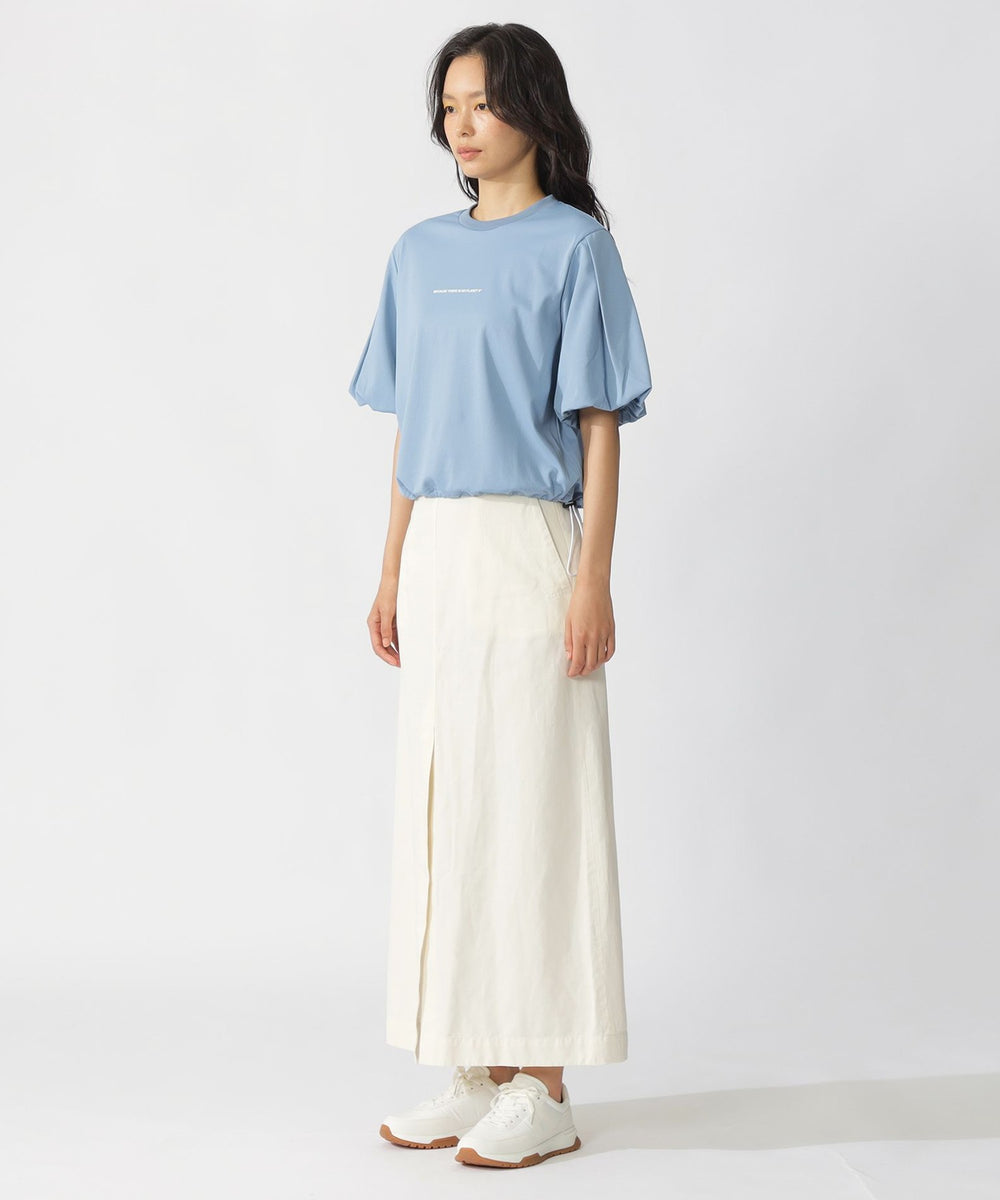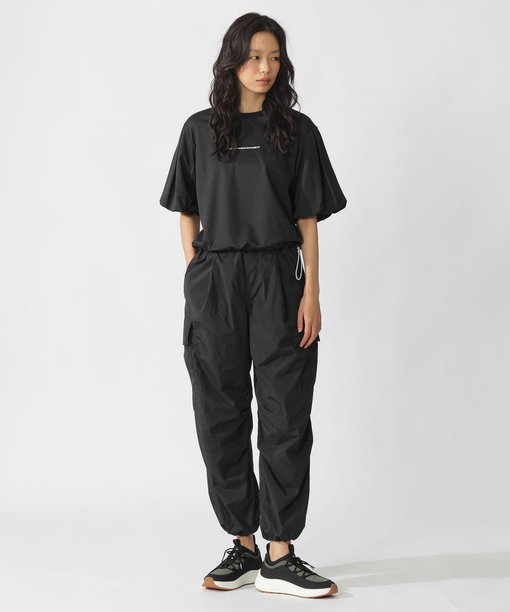 プリントデザインや、裾周りのアジャスターディティールがアクセント。