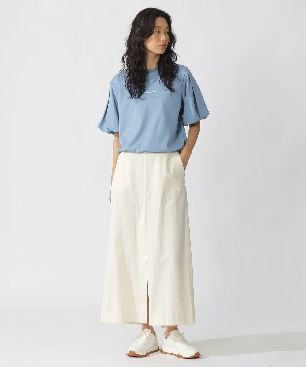 2枚仕立てにデザインしたボリュームあるパフスリーブが特徴。