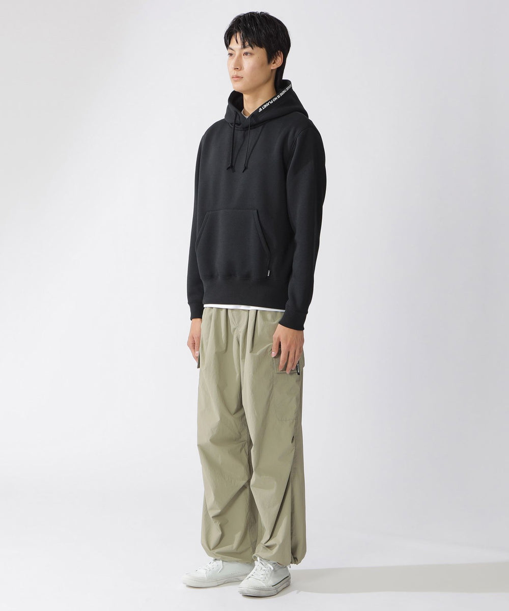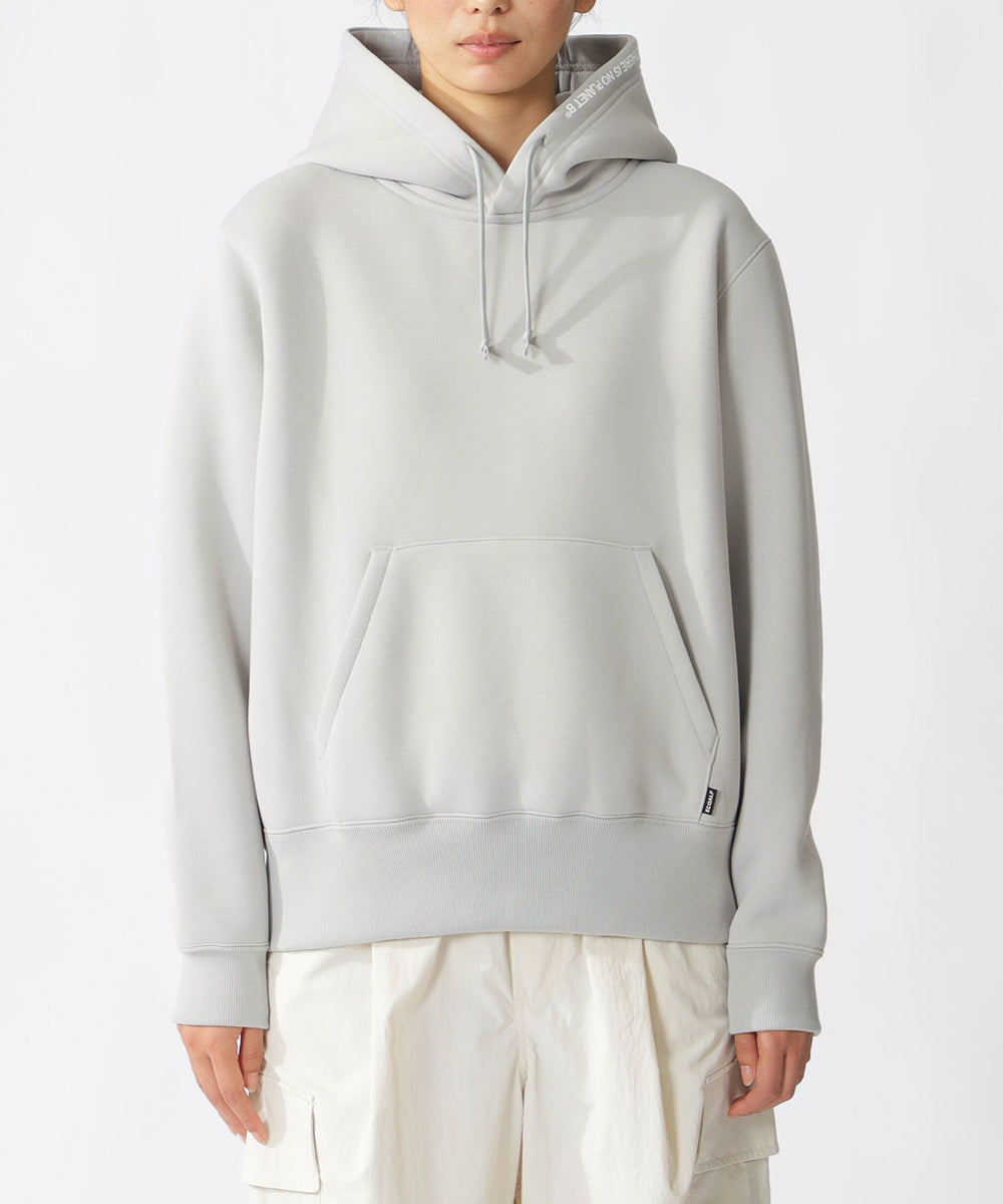 さりげなくフード片脇に施したブランドメッセージ