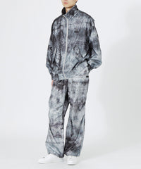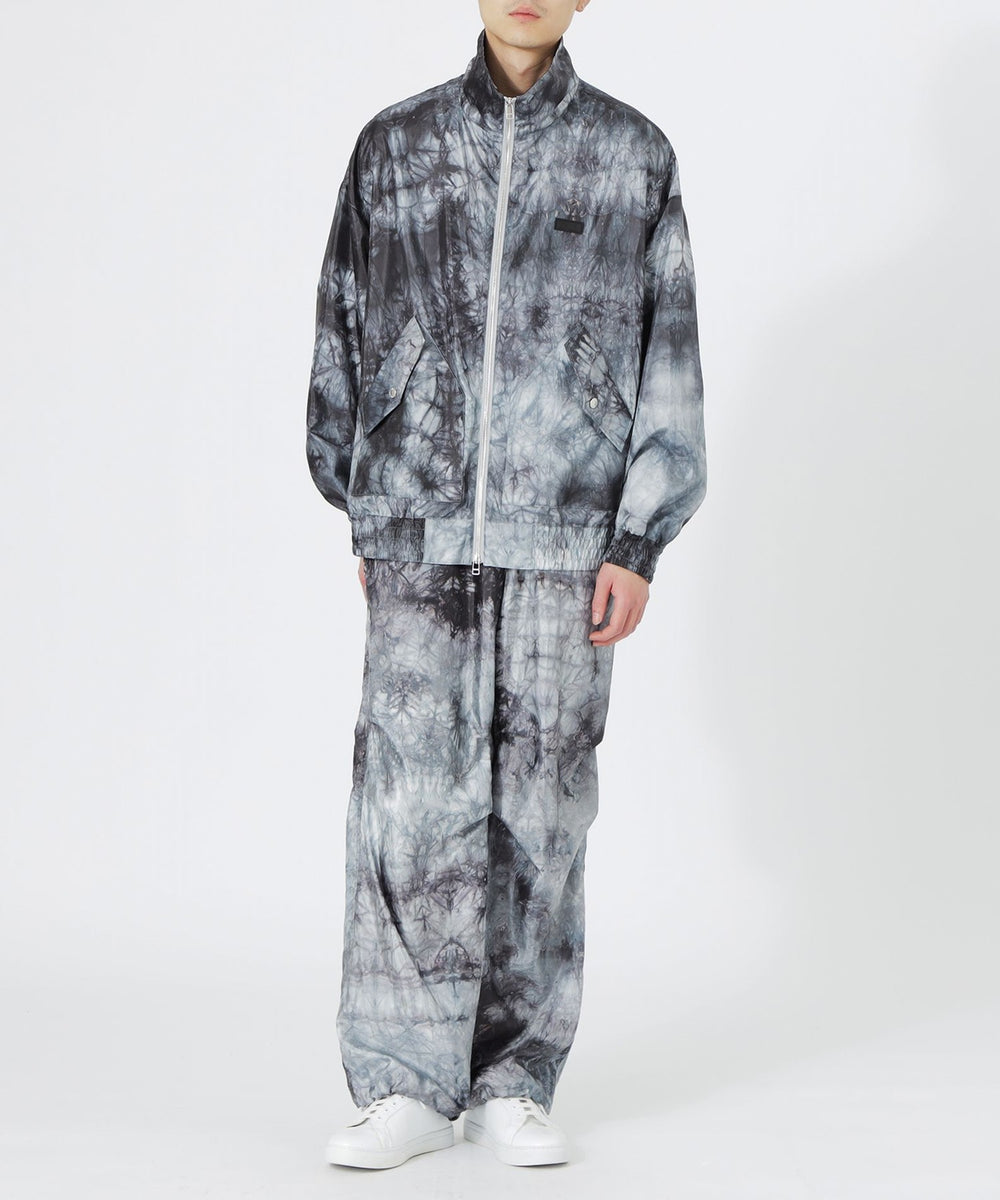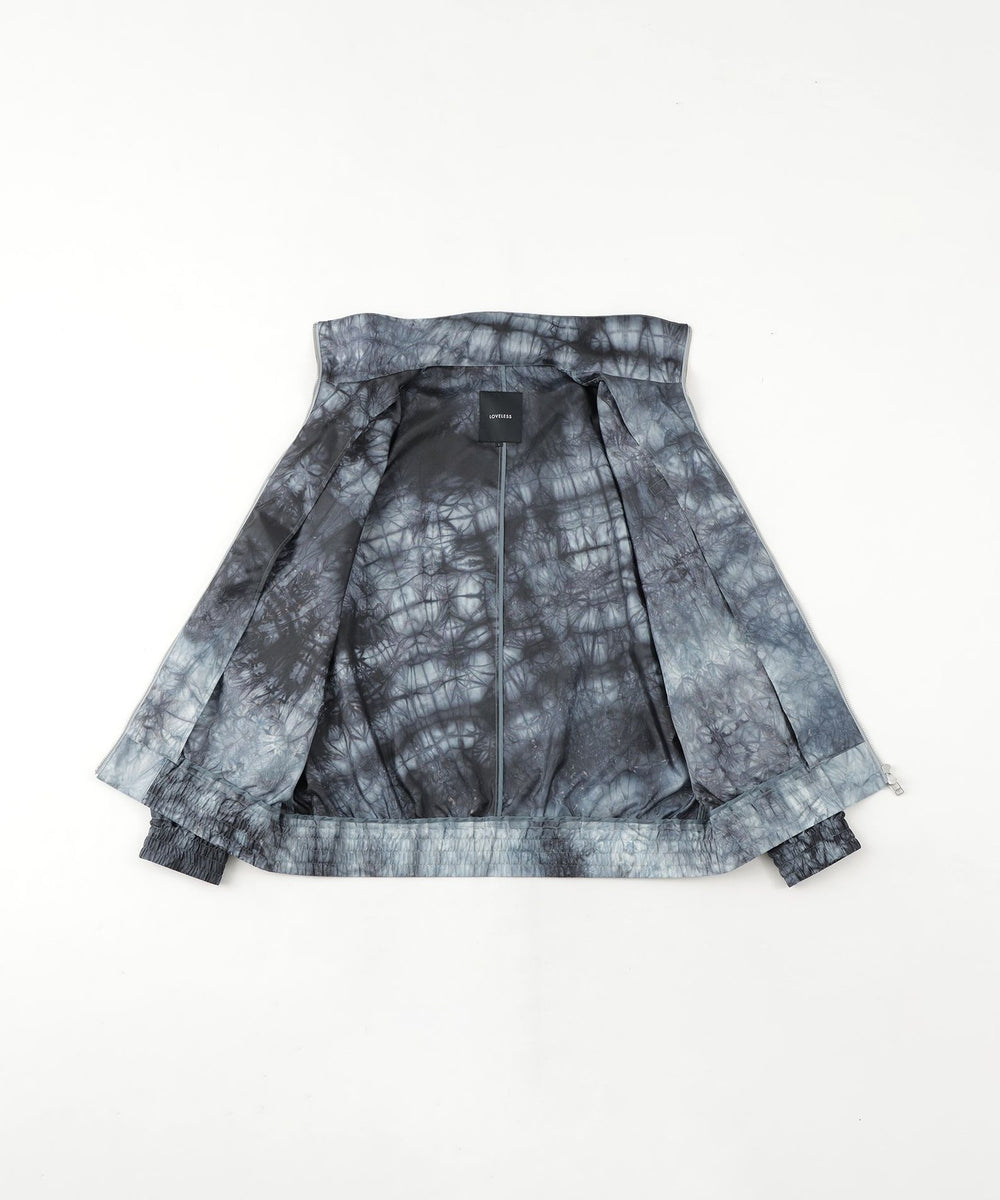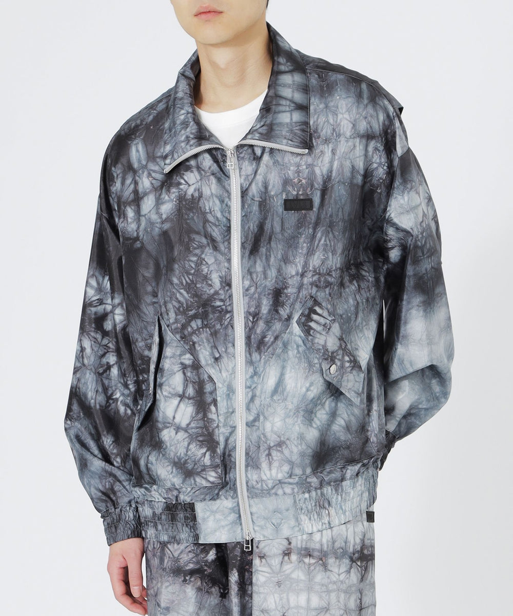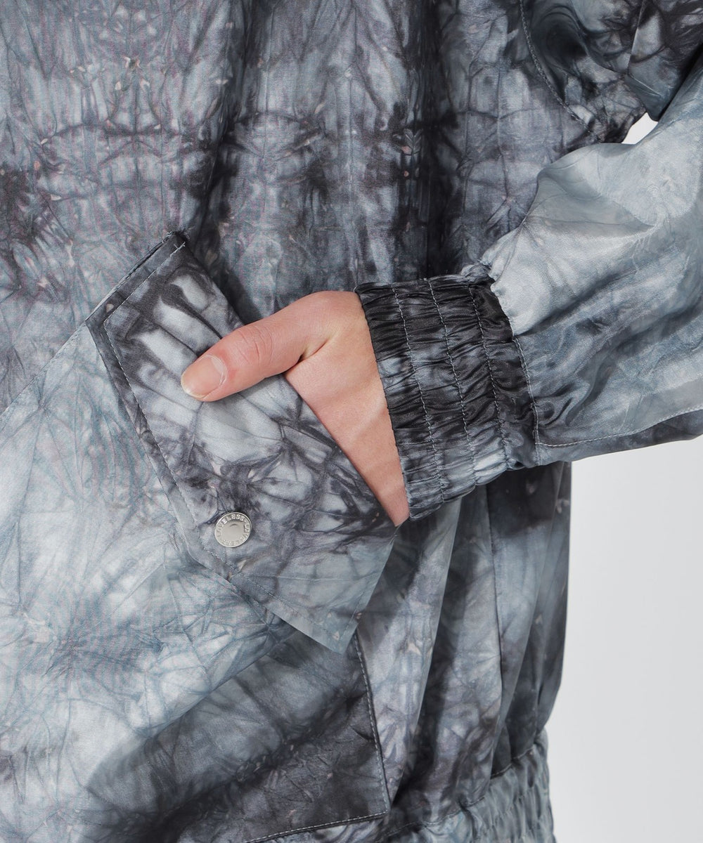 表地には、分散染料で染めたムラ染め柄が目を引くポリエステルタフタ素材を使用。