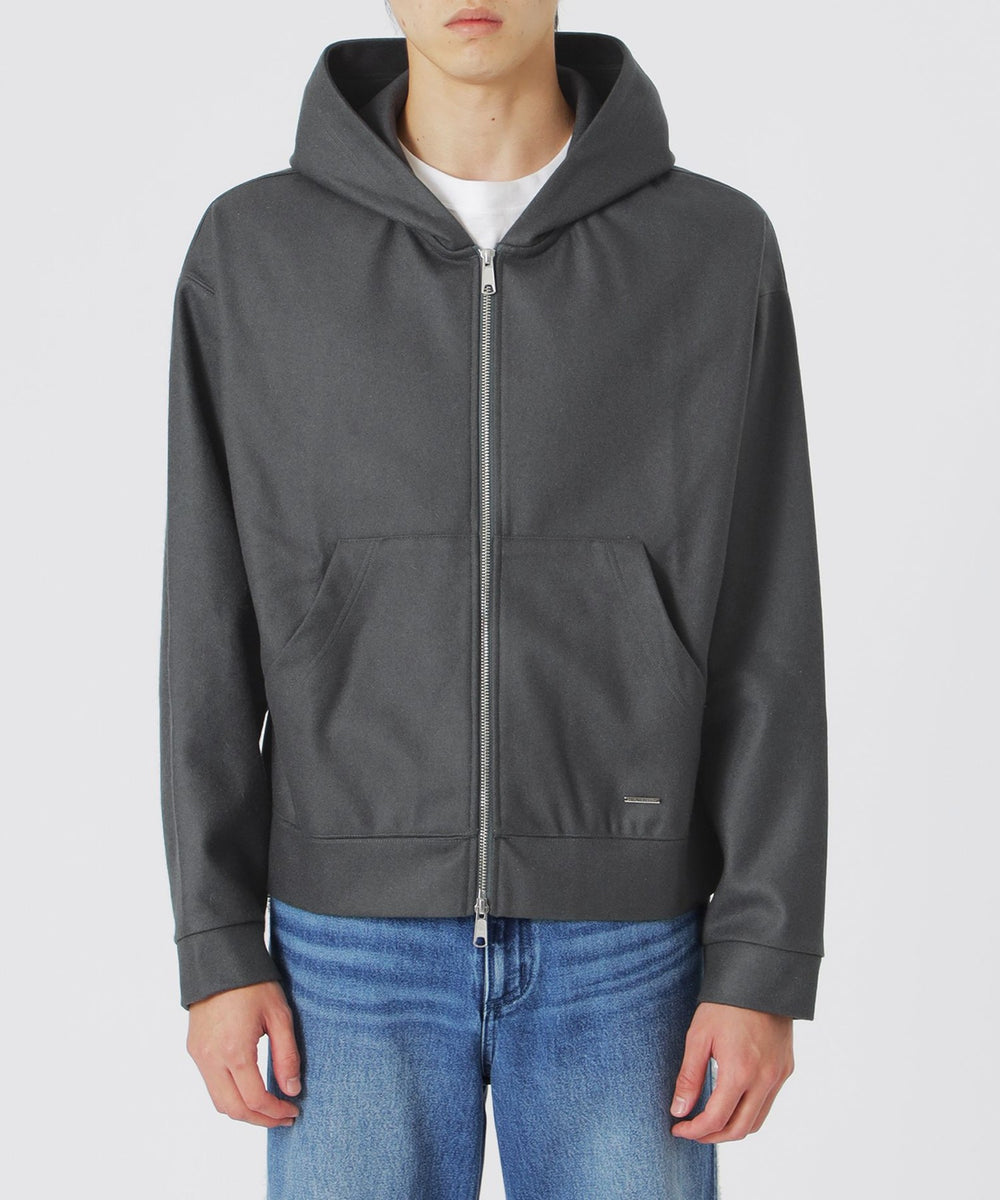 ウール混のメルトン素材を使用した大人のジップアップパーカー