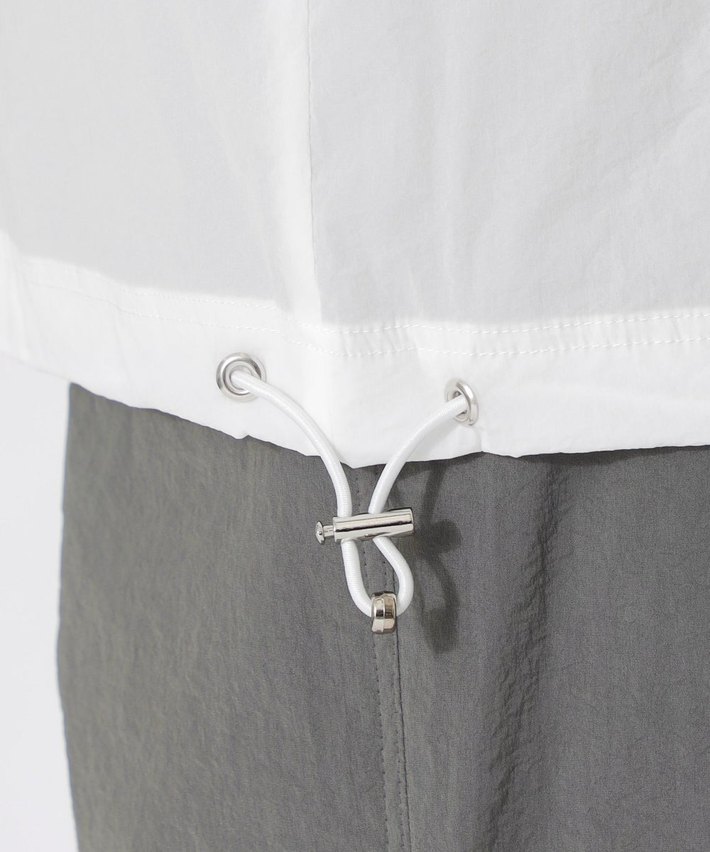 裾部分にはアジャスターコードが搭載されており絞ることでシルエットを調整でき一段と個性的でスタイリッシュになります。
