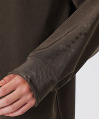 程よいドレープ感と上品な光沢のある縦編みニット素材を使用しています。