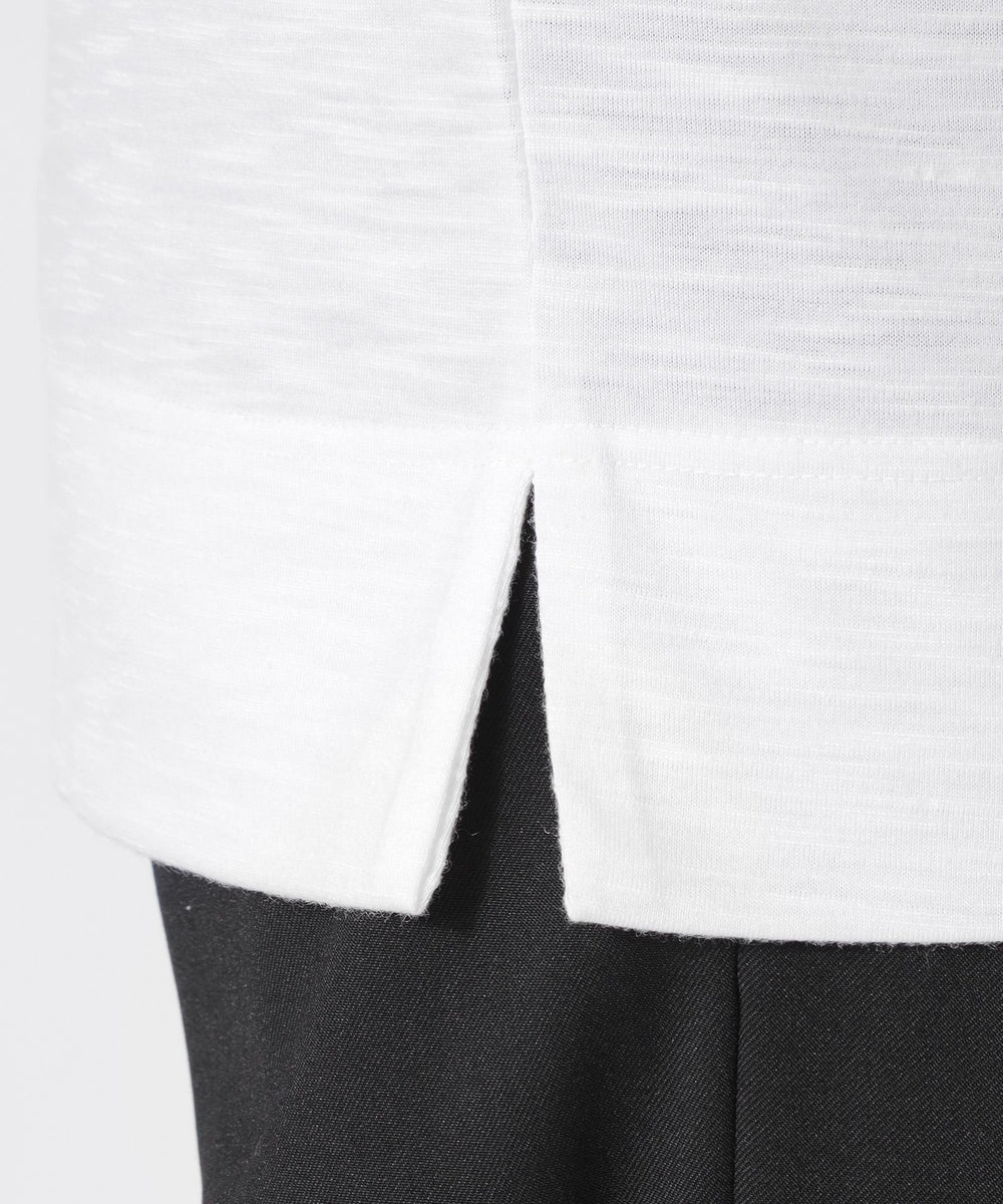裾の両サイドにスリットを入れることで、腰回りの突っ張り感を軽減させ動きやすくしました。