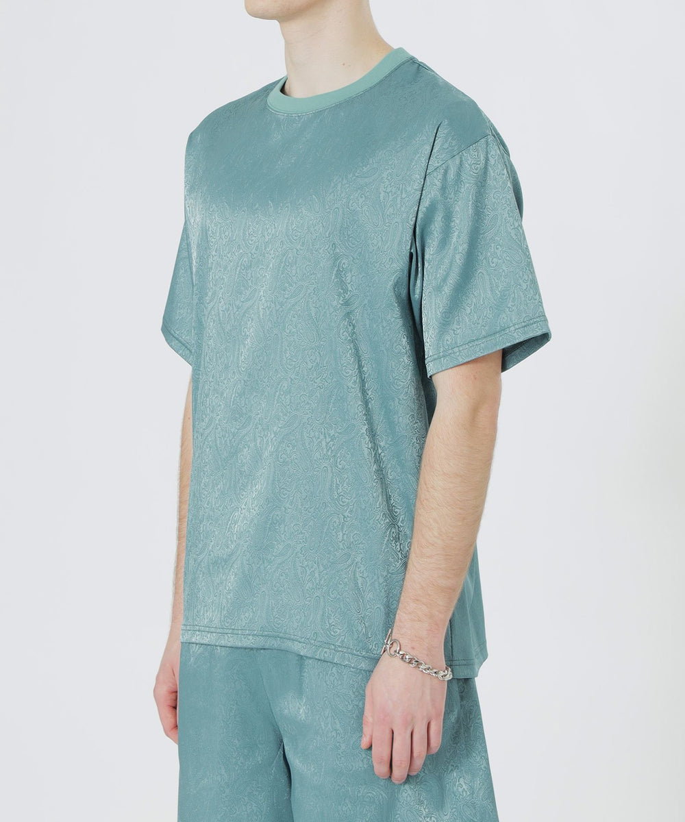 光沢感のあるトーナルなペイズリー柄が目を引くショートスリーブTシャツ