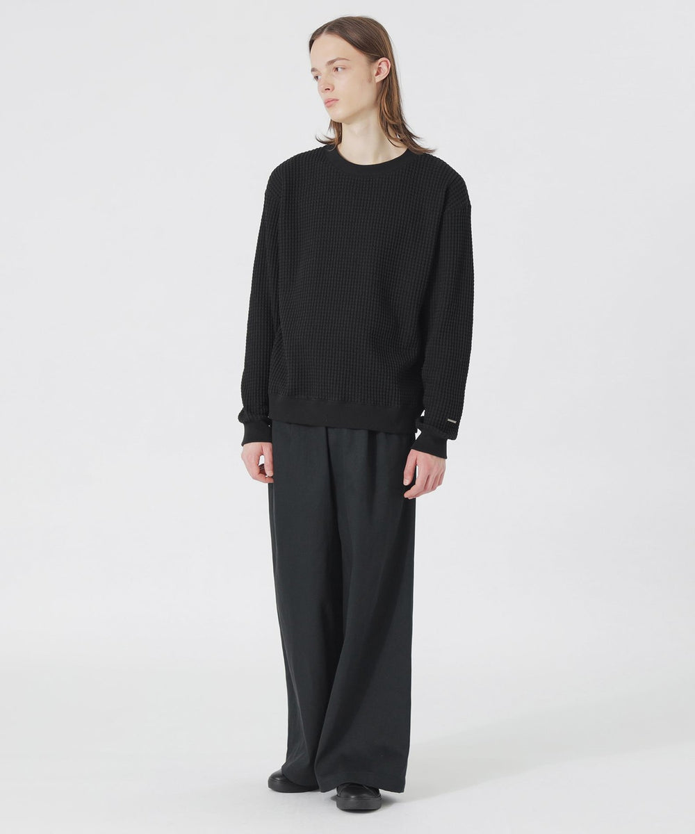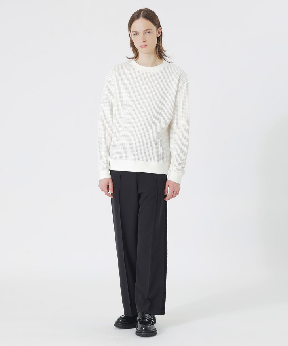 ワッフルは糸を浮かせて作られているため、包み込むような柔らかい肌触りがあり着心地も抜群です。