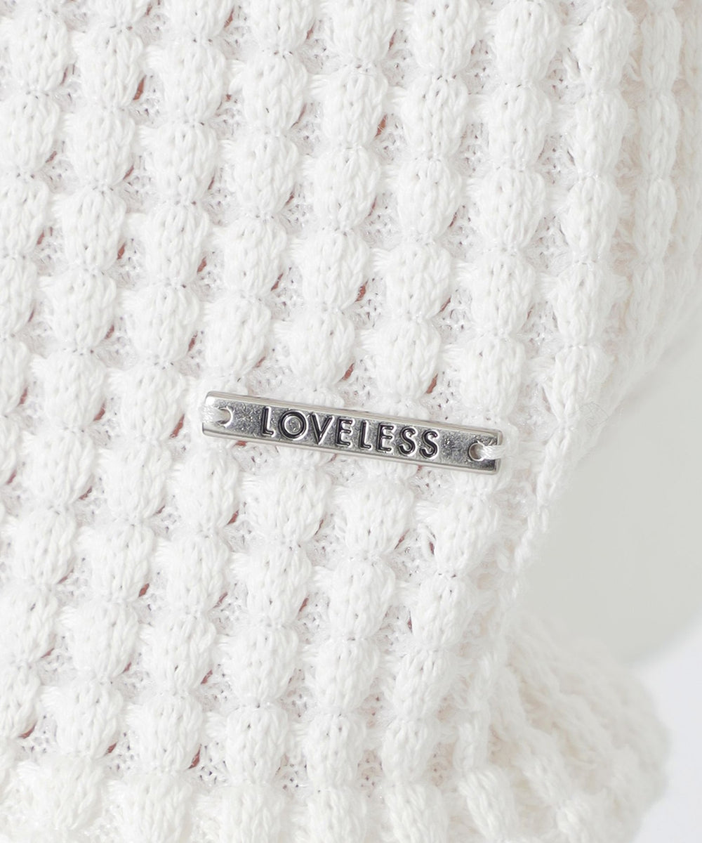 左袖部分にはLOVELESSのロゴ入りのプレートを配しさりげないポイントを演出。