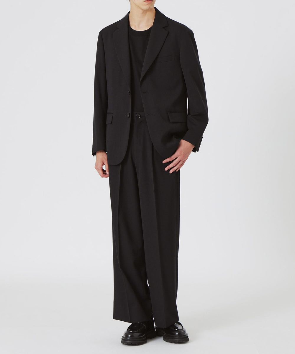 同素材のワイドジャケット(品番:61D01640)を揃えておけばセットアップでの着用が可能。