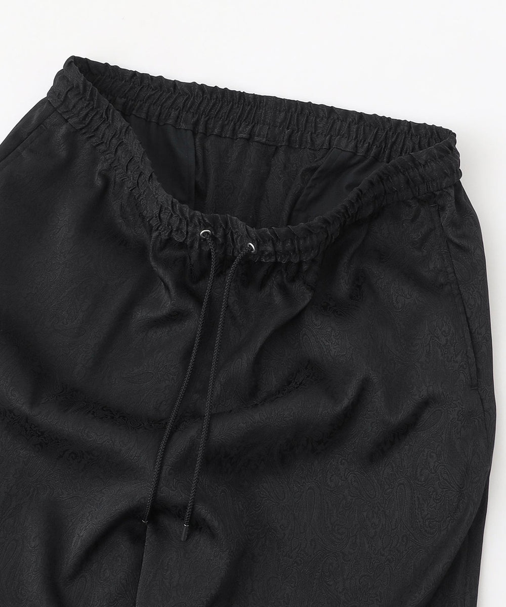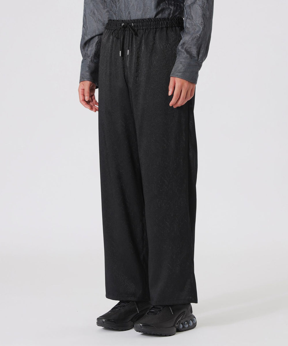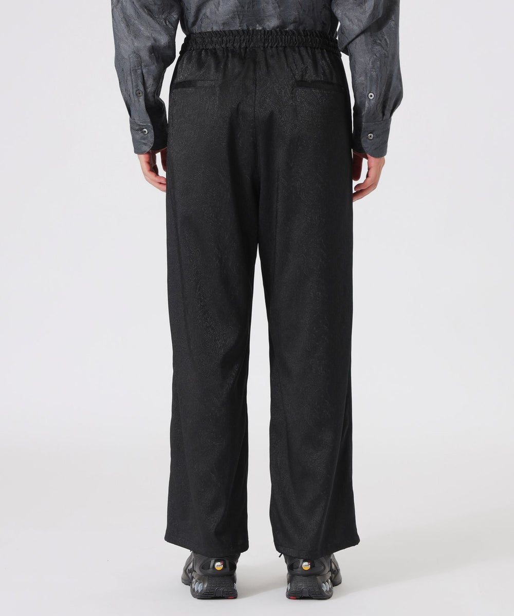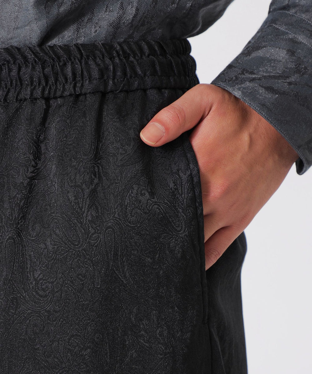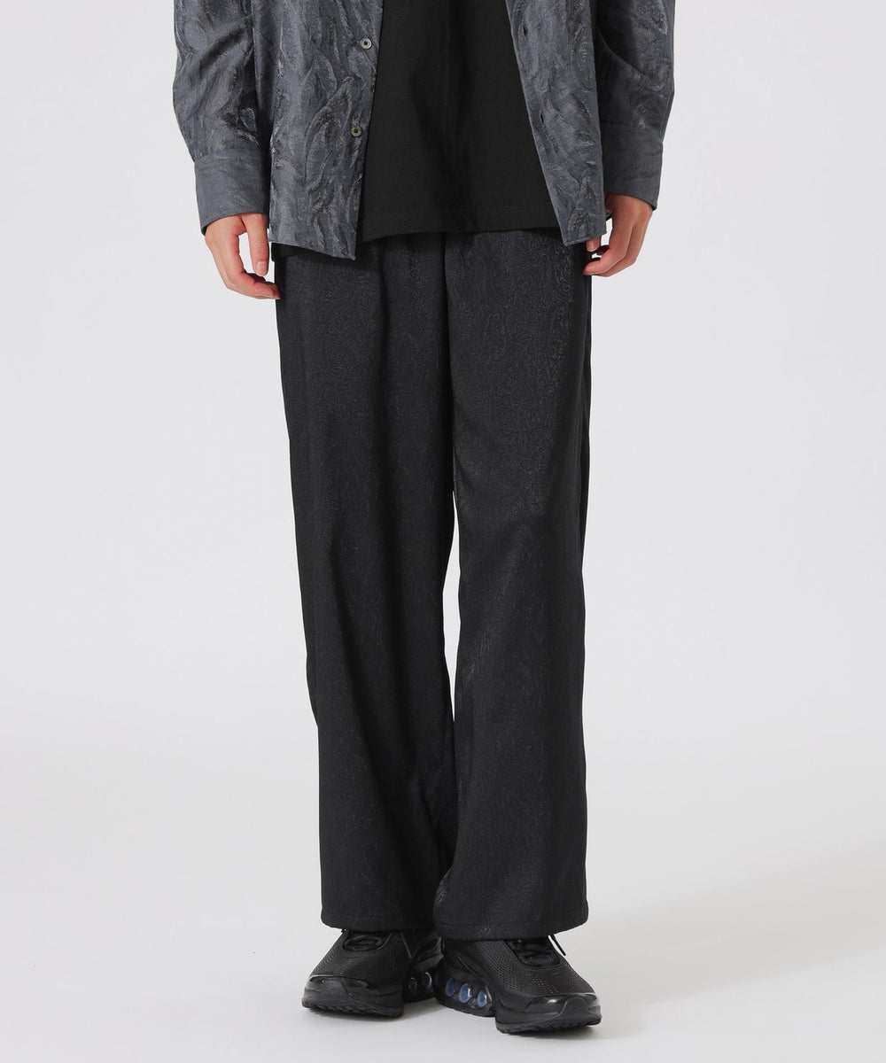 光沢感のあるトーナルなペイズリー柄が目を引くワイドパンツ