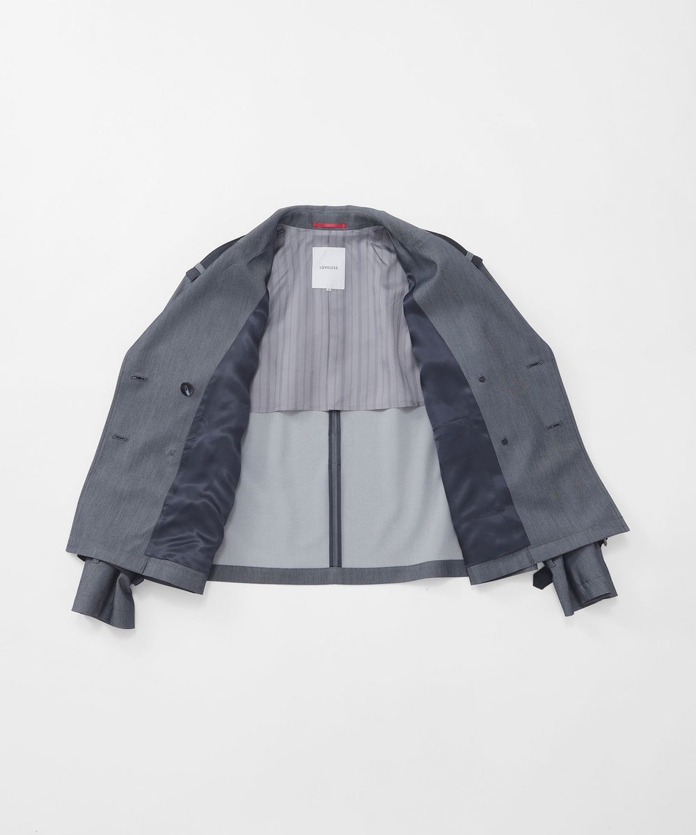背ヨーク・肩章・ウエストベルト・袖ベルトには無地素材を配色にすることで、全体を引き締めています。