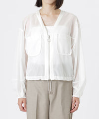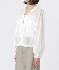 ワンピースやキャミソールの上にさらっと羽織って、旬のシアースタイルに。