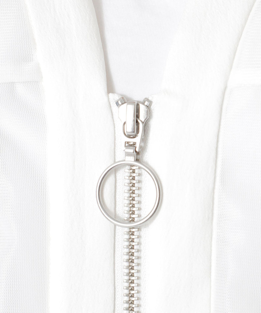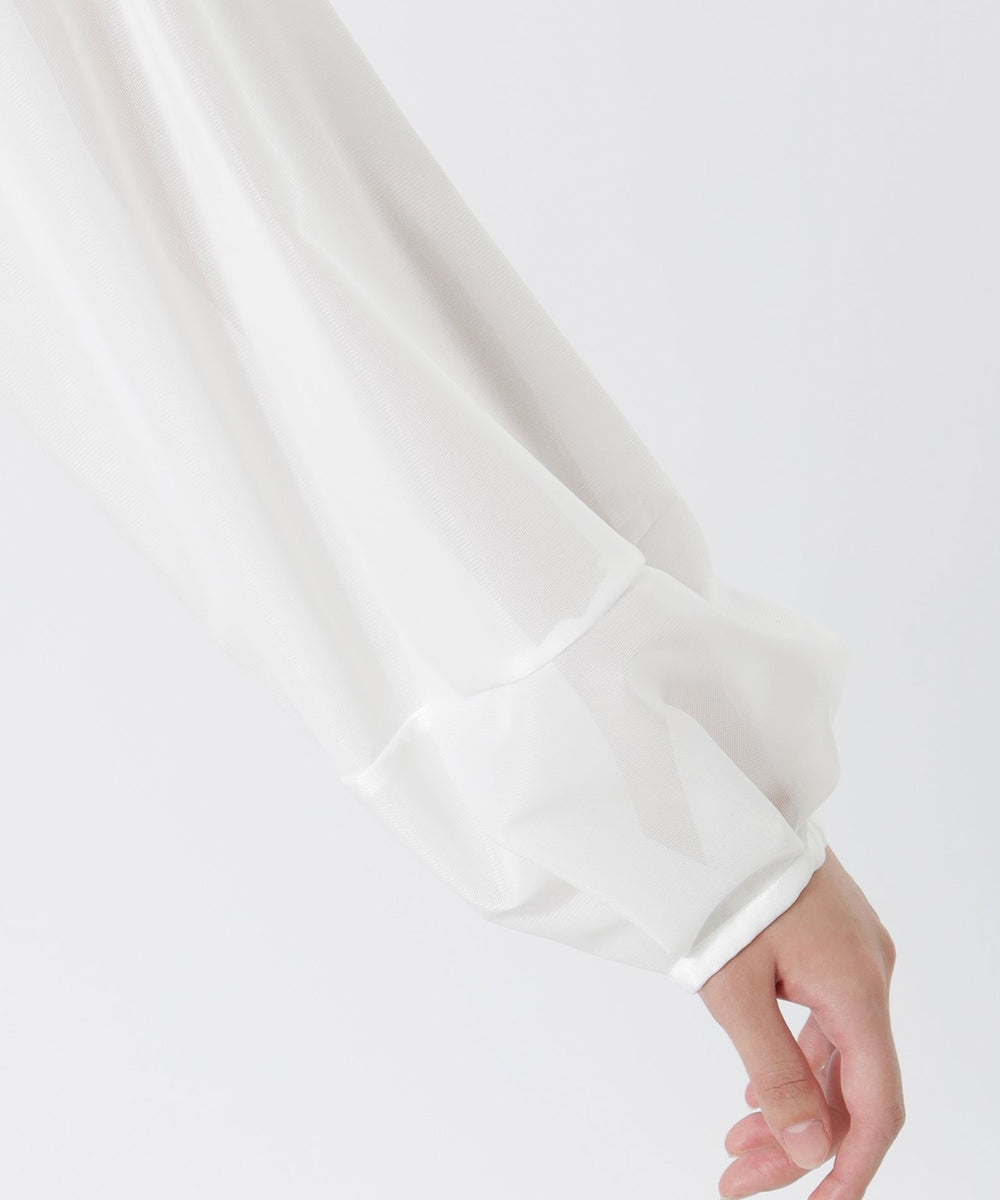 サテン調のシアーラッセルメッシュを使用。