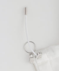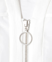 リングファスナーとパイピングが効いた大きめのパッチポケットは、程よくモードな表情もあり、視覚的にもアクセントに。