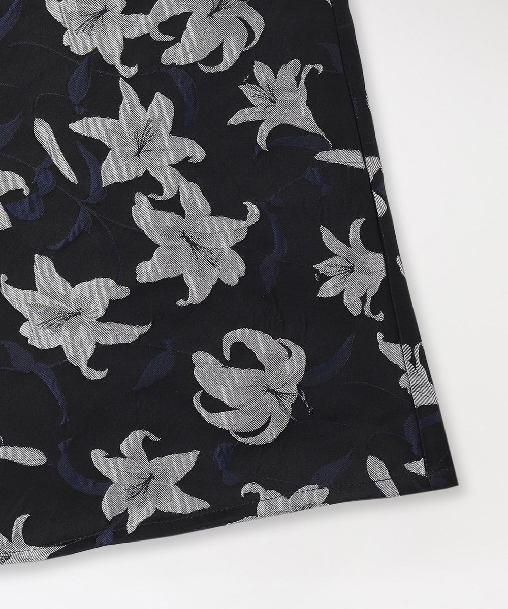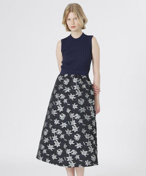 スカート部分は光沢糸の入った存在感のあるジャガード生地を使用し、上品で華やかな印象。