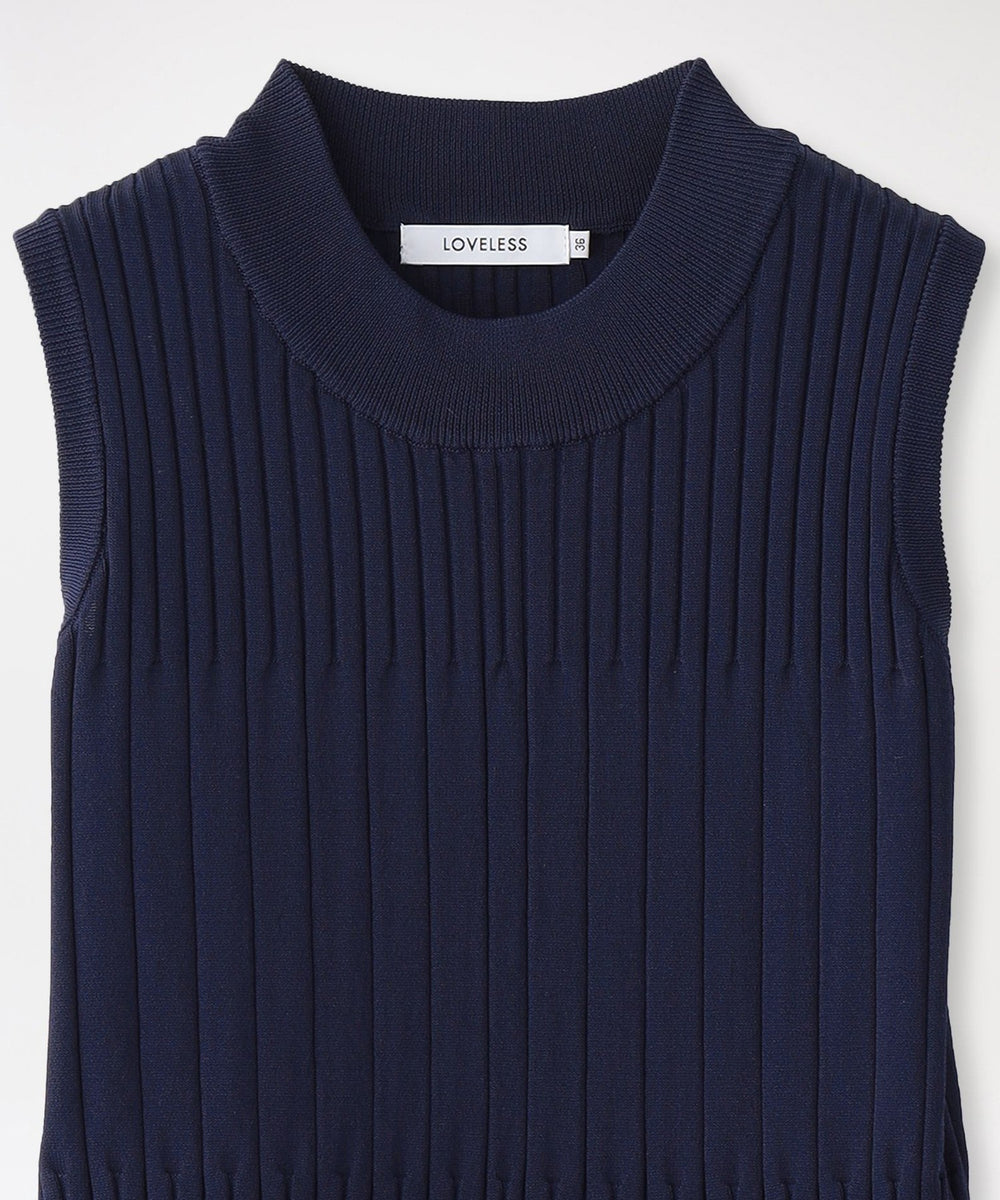 トップス部分は肌触りの良いレーヨン混の糸を使用したしっかりとしたリブ編みで、リブの太さを切り替えることにより、メリハリのある表情に。