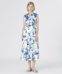 スキッパー衿が首元をすっきりと見せ、フィット&フレアーのシルエットが上品な印象のシャツドレス。