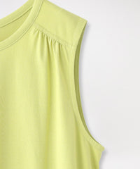 ブラウスやカーディガンとのレイヤードスタイルがおすすめ。