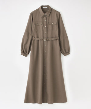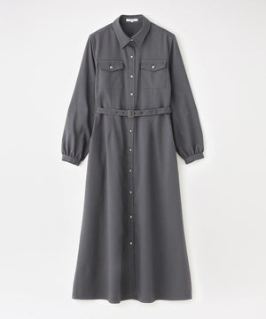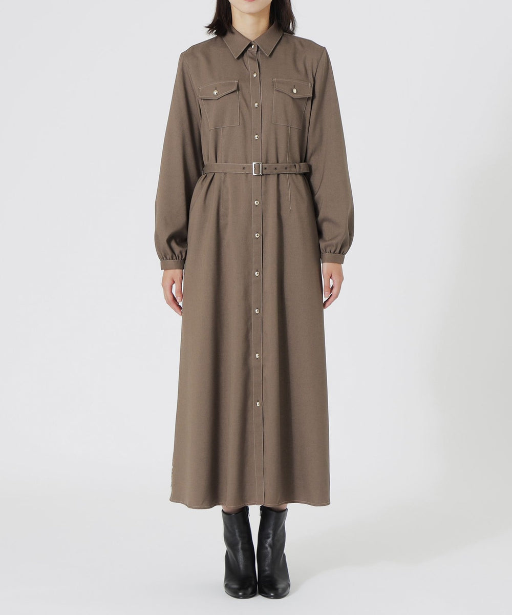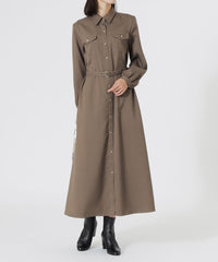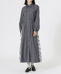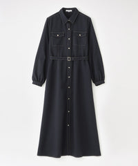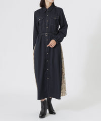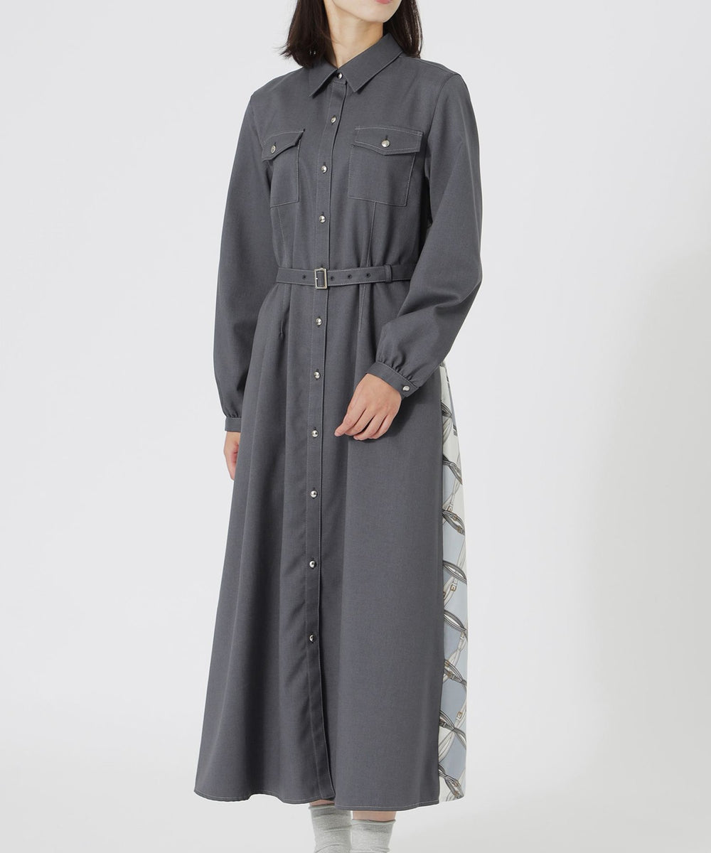 配色のステッチがアクセントになった、ブロッキングシャツカラードレス