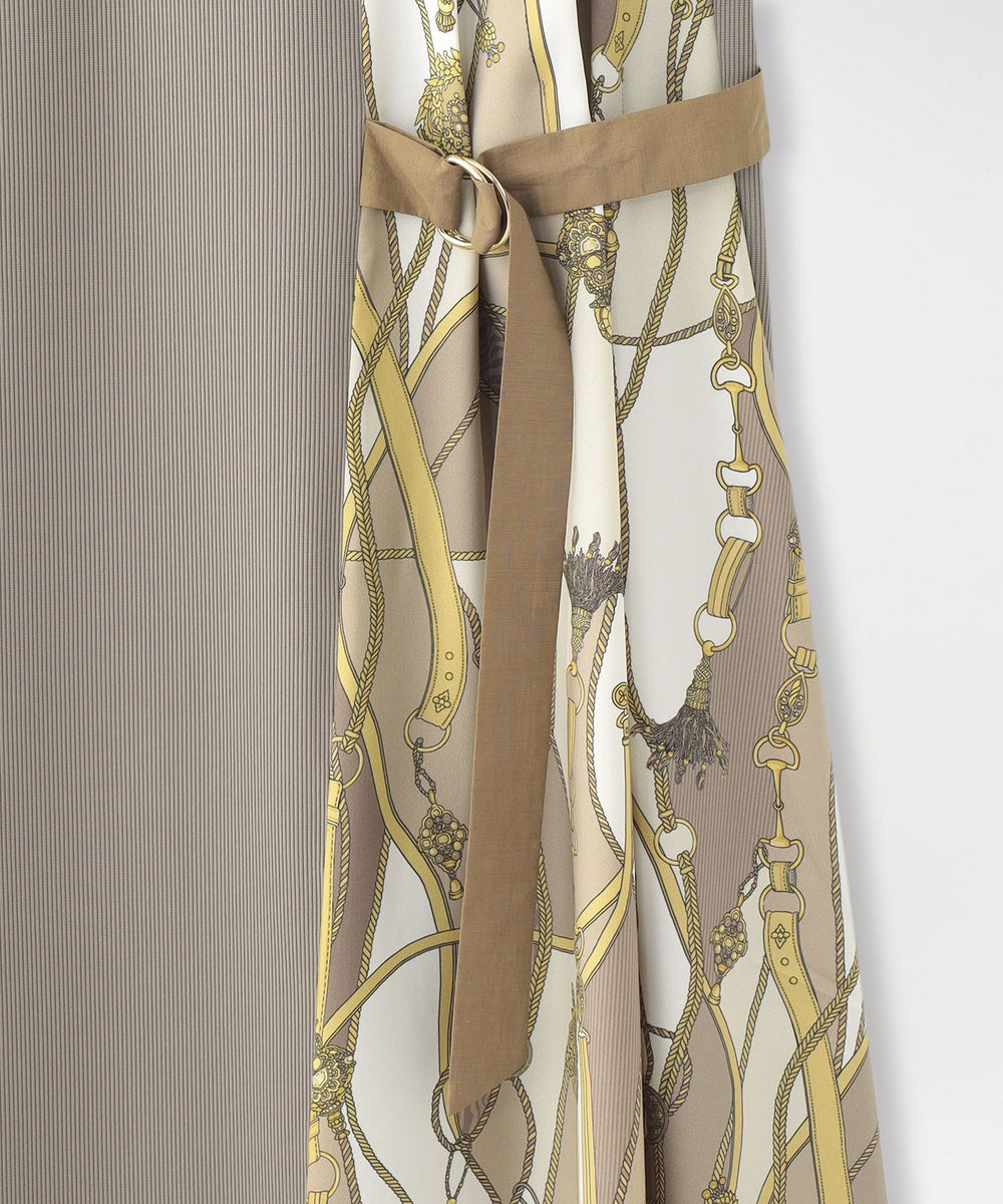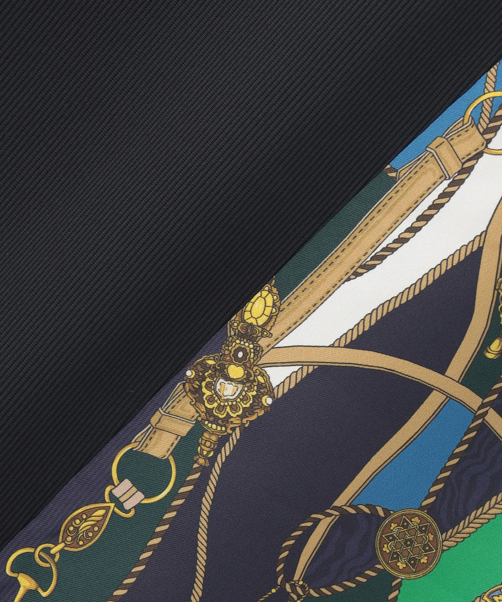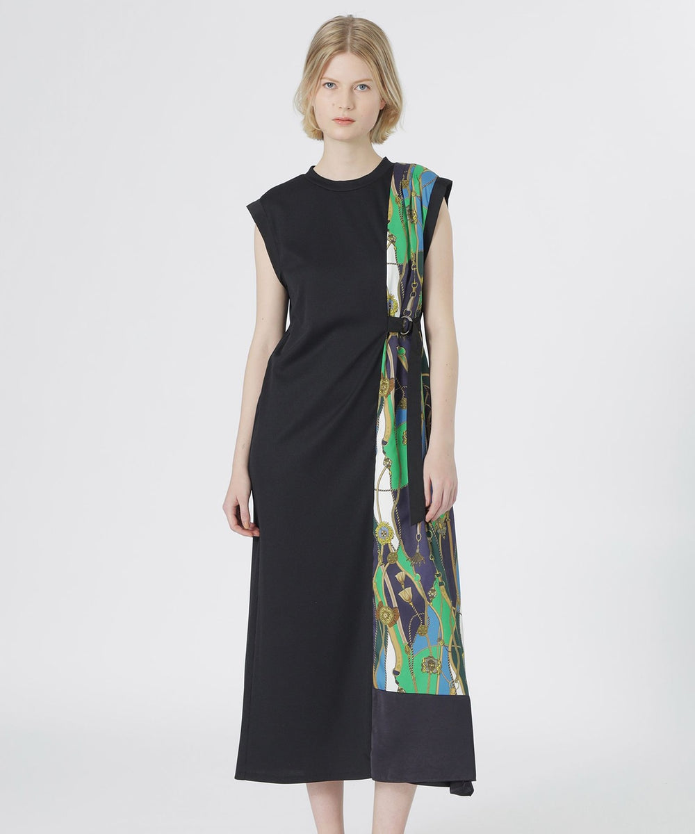 ドレスの左サイドには、LOVELESSオリジナルのスカーフ柄をプリントしたオリジナルのテキスタイルを使用。