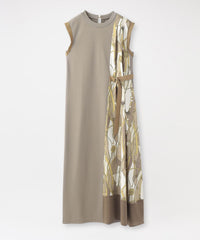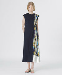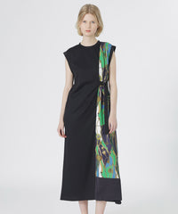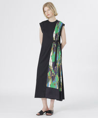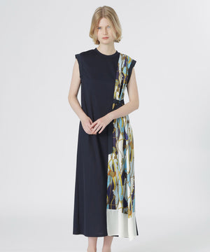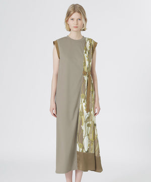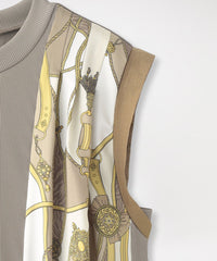 オリジナルで作成したスカーフ柄テキスタイルをブロッキングしたカットソードレス