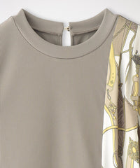 アシンメトリーな裾のラインはスカーフのようなディテールにすることで、優雅なドレープ感が生まれ、装いに洗練されたアクセントをプラス。