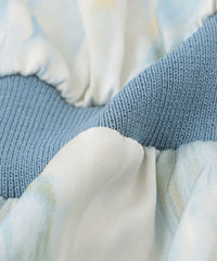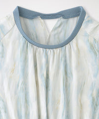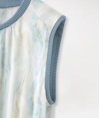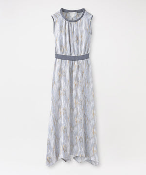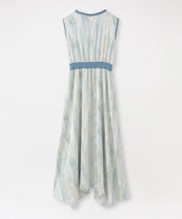 ニュアンス柄とハンカチーフヘムが揺らめく、コンビノースリーブドレス